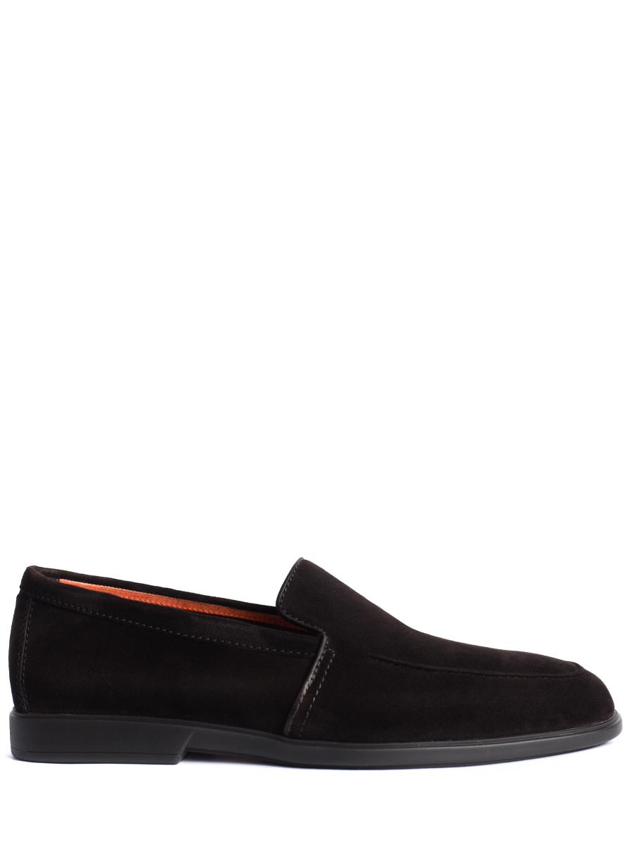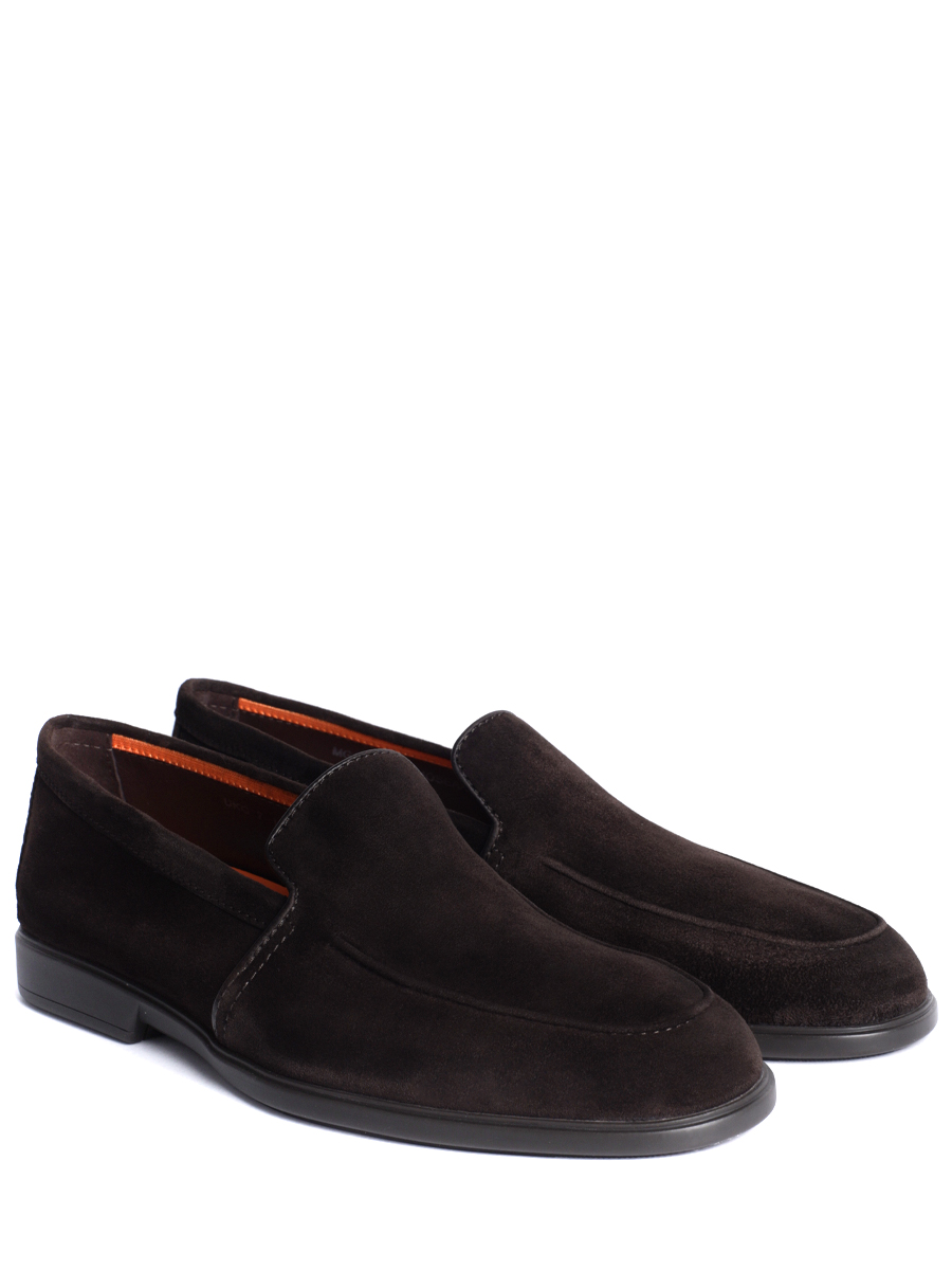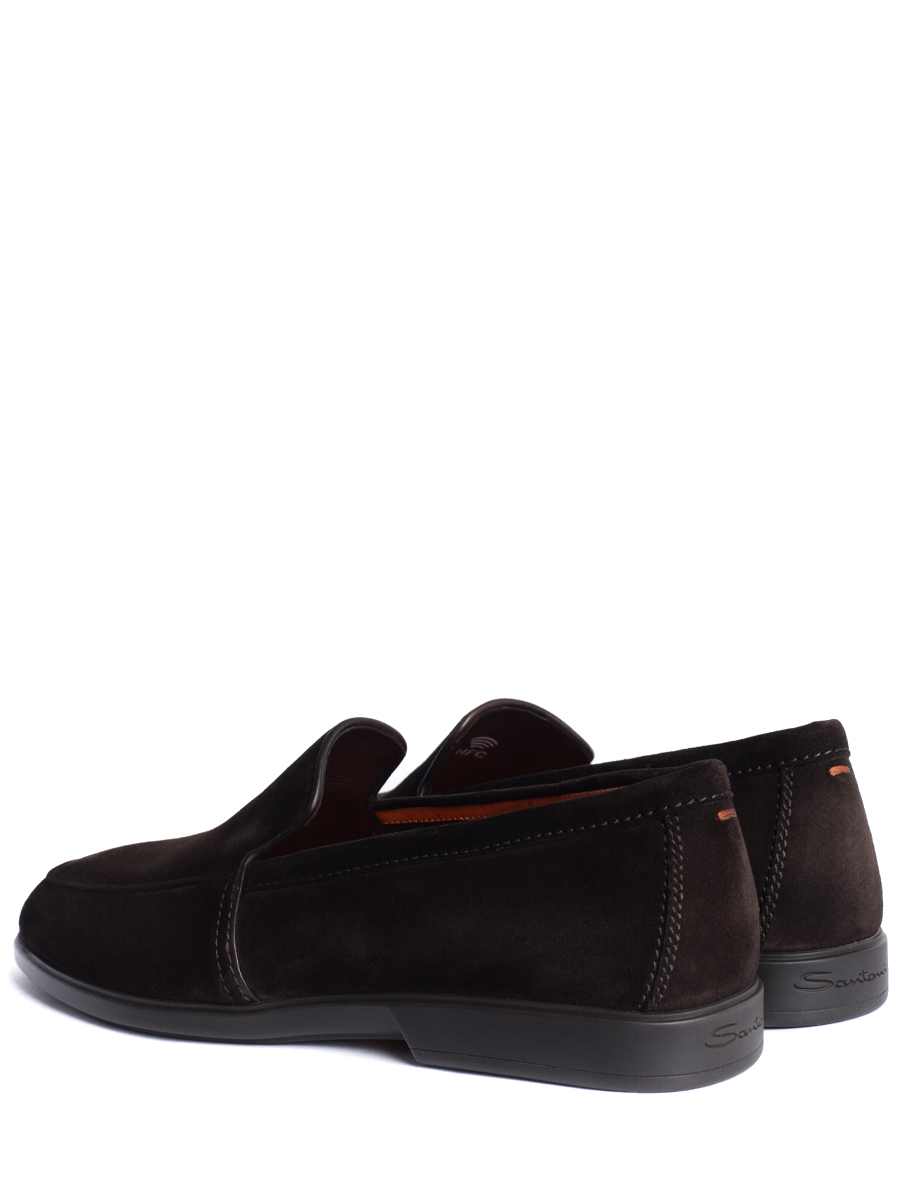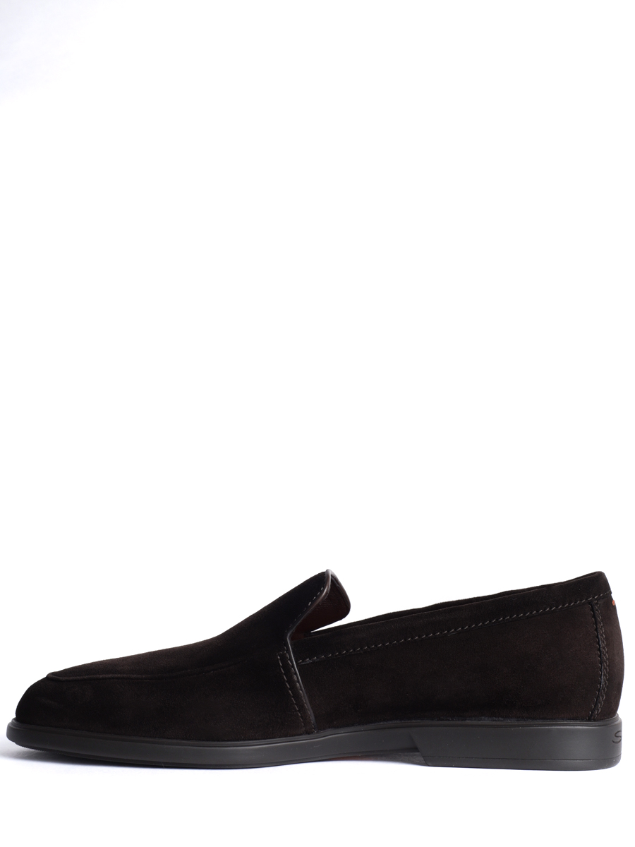 Лоферы Santoni выполнены из мягкой замши с эффектом деликатной патинированной отделки. Модель без шнуровки дополнена эластичными вставками по бокам для удобной посадки, аккуратной прострочкой по контуру и гладкой кожаной отделкой края. Внутренняя подкладка из кожи обеспечивает комфорт, подошва из прочного материала с небольшим каблуком гарантирует устойчивость и износостойкость.