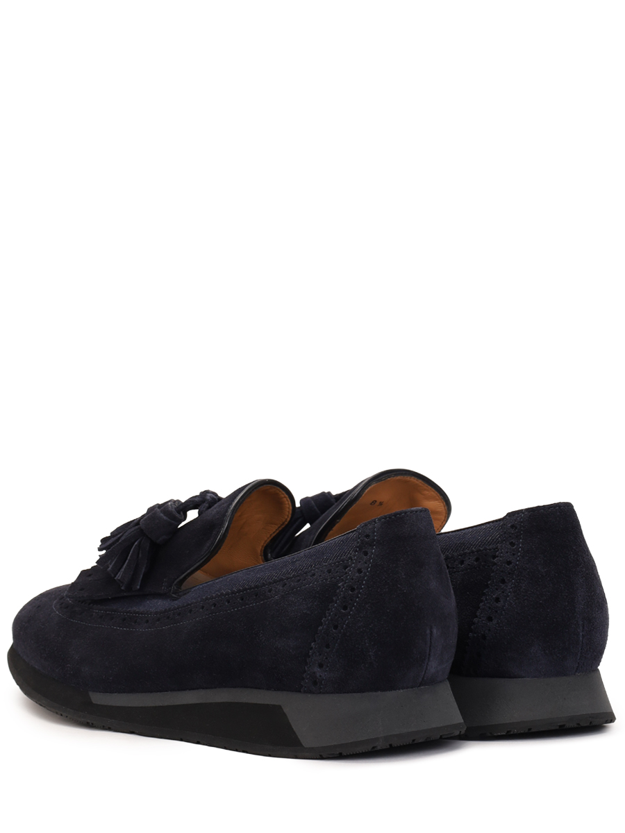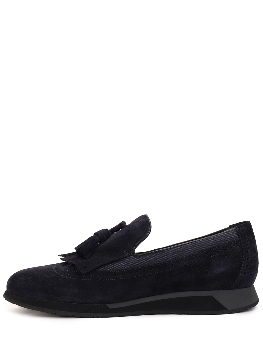 Замшевые лоферы на платформе, с кистями и перфорацией.
