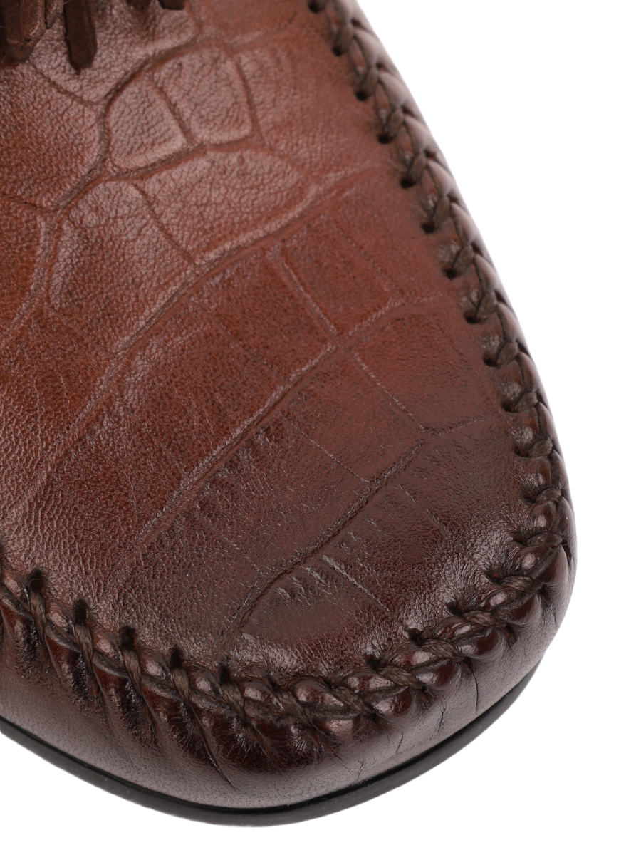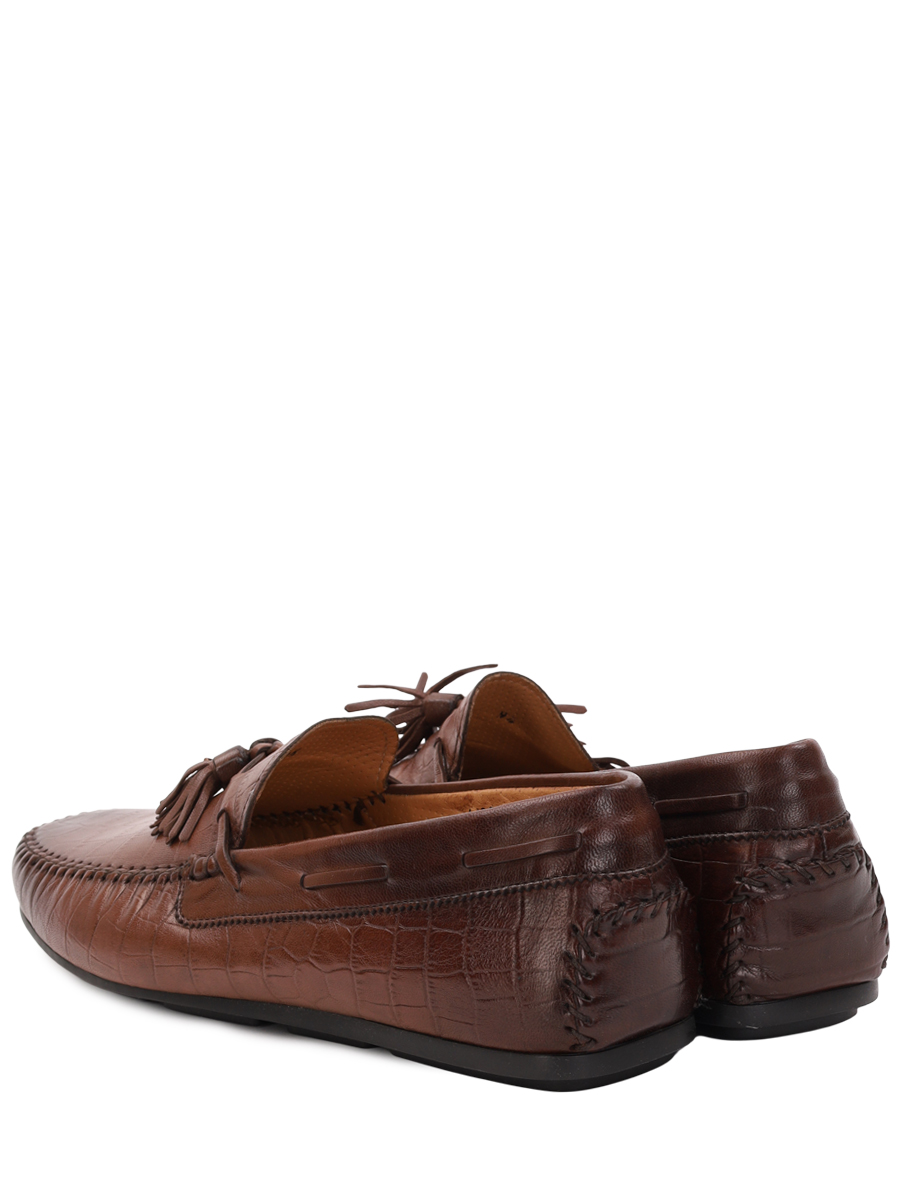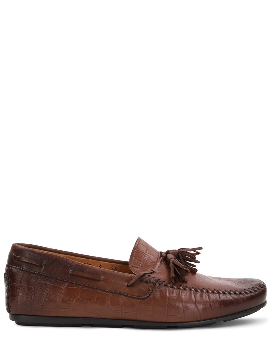 Кожаные мокасины с кисточками и имитацией под кожу рептилии.