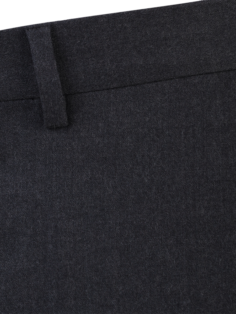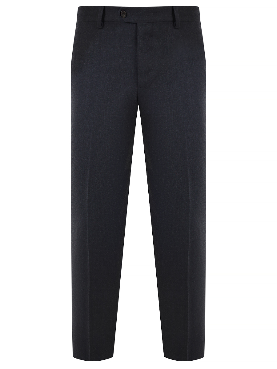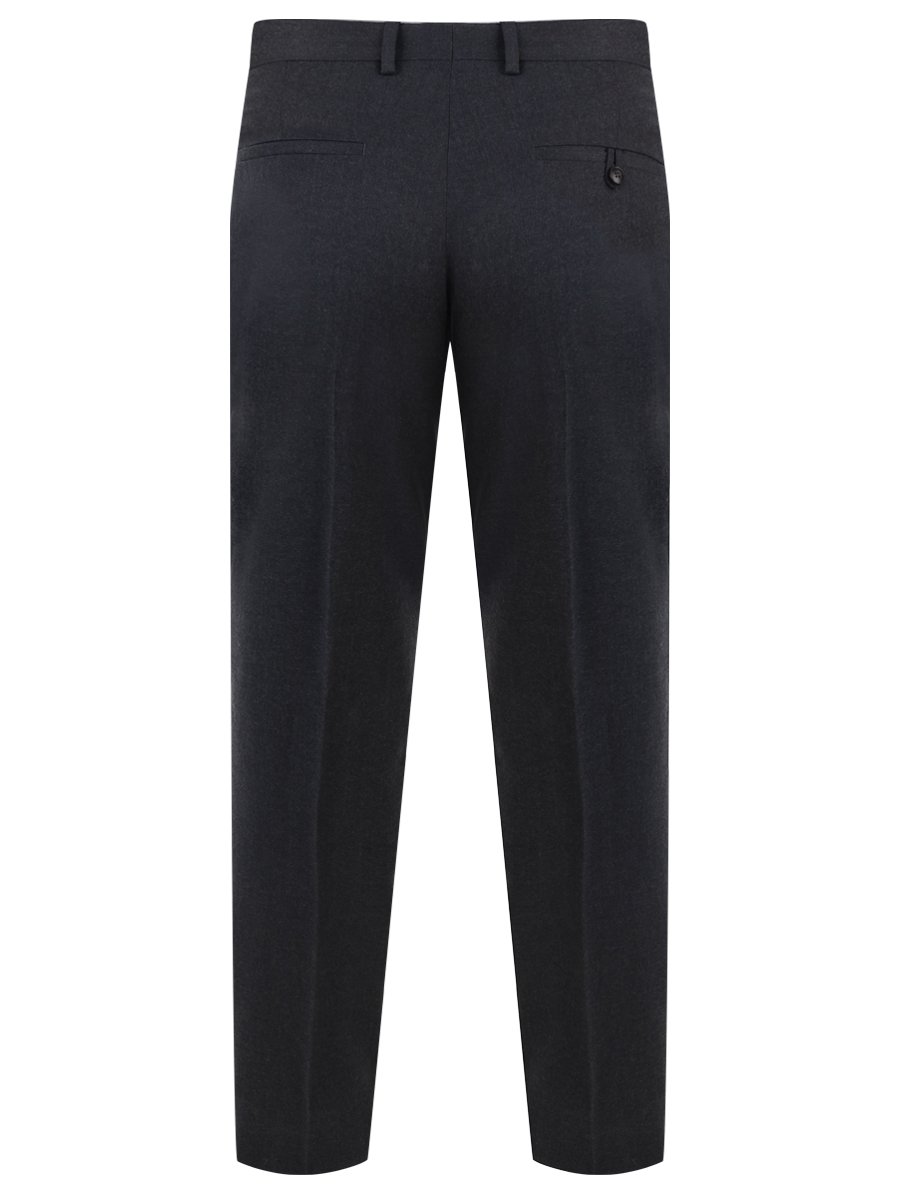 Для изготовления темно-серых брюк мастера бренда использовали мягкую шерстяную фланель. Прочный материал практически не мнется. Модель из осенне-зимней коллекции 2019 года составит гармоничный комплект с клетчатым пиджаком и яркой рубашкой.