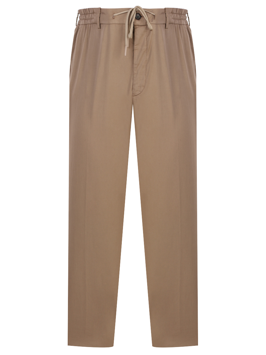 Брюки из смесового хлопка от BERWICH. Модель полуприлегающего силуэта со стандартной посадкой, эластичным поясом с кулиской и шлевками, прорезными карманами, застежкой на молнию и пуговицу.