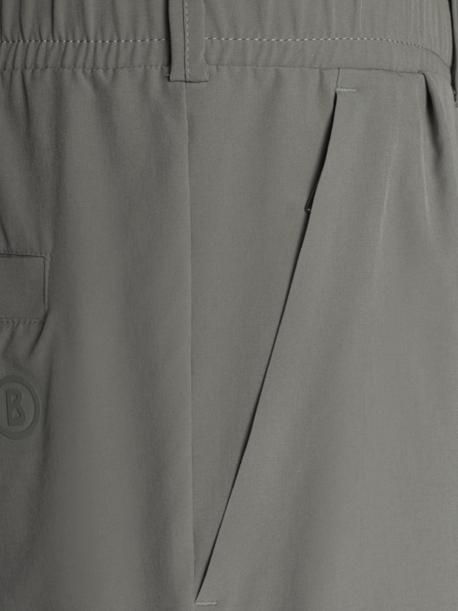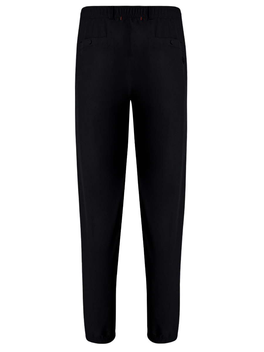 Брюки Bogner выполнены из лёгкого технологичного материала. Прямой крой с лёгким заужением к низу дополнен эластичными манжетами, обеспечивающими комфортную посадку и свободу движений. Пояс со шлёвками и эластичной вставкой сзади адаптируется по фигуре, создавая удобство в носке. Модель оснащена боковыми карманами и задними прорезными карманами с клапанами, а также скрытым карманом на молнии. Лаконичный дизайн и функциональные детали подчёркивают универсальность изделия для повседневного и активного гардероба.