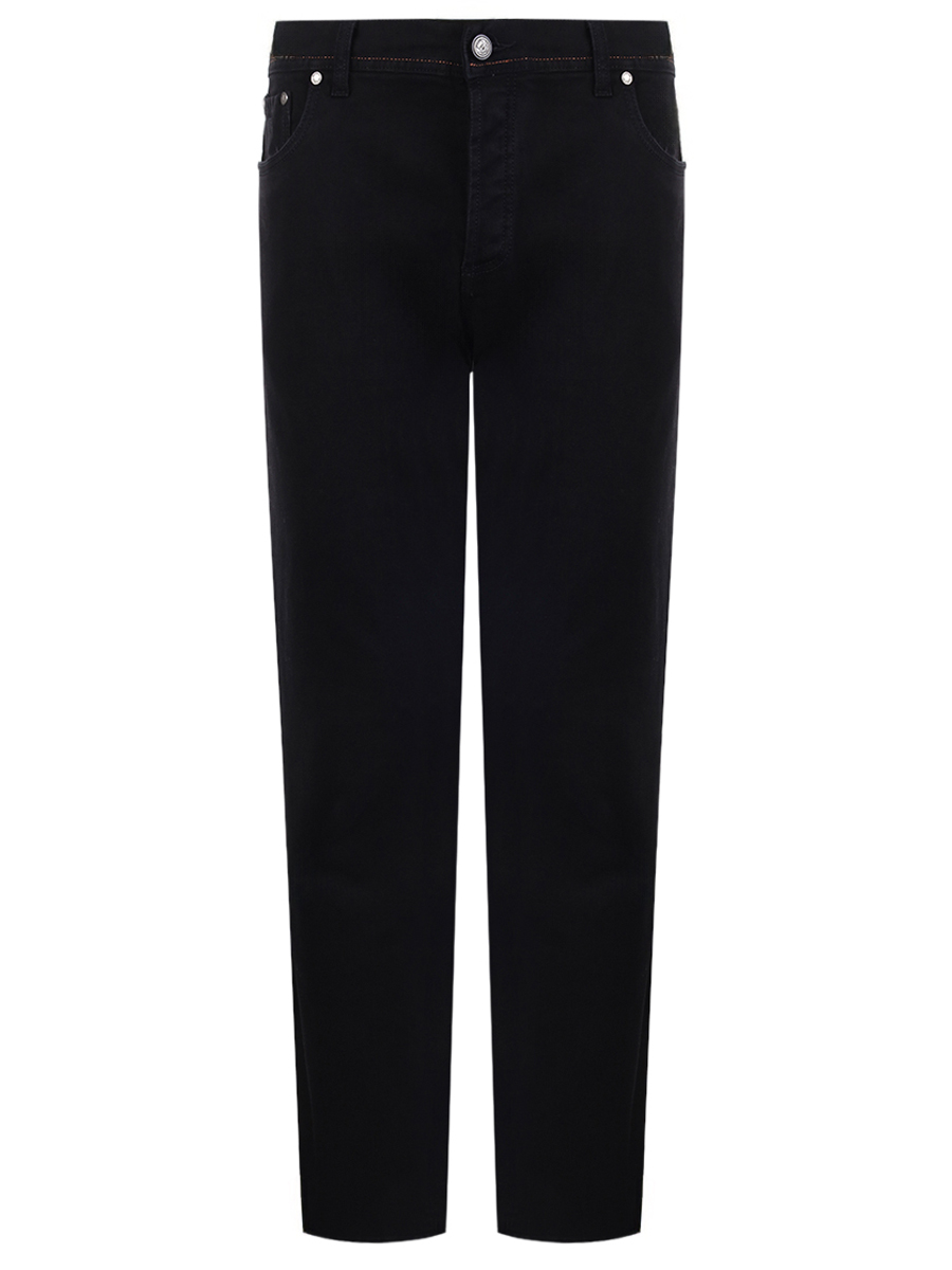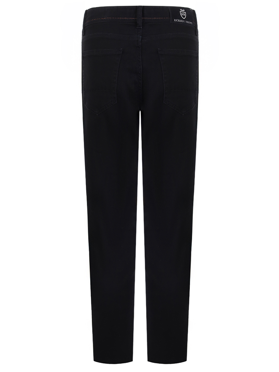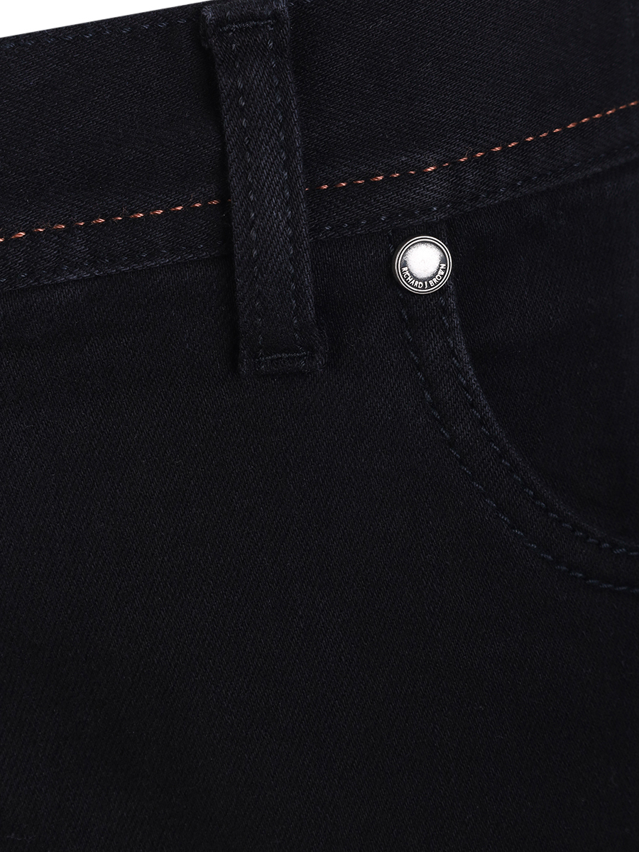 Черные джинсы из хлопка от RICHARD J BROWN. Модель полуприлегающего кроя со средней посадкой, поясом со шлевками, прорезными и накладными карманами, застежкой на пуговицы, фирменной нашивкой с логотипом бренда. Благодаря добавлению эластана джинсы немного тянутся и не стесняют движений.