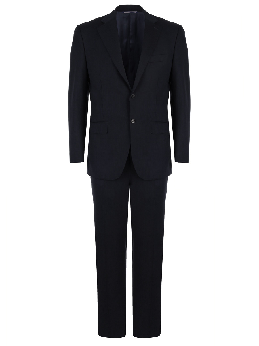 Костюм из шерсти. Однобортный пиджак на двух пуговицах. Брюки прямого кроя.