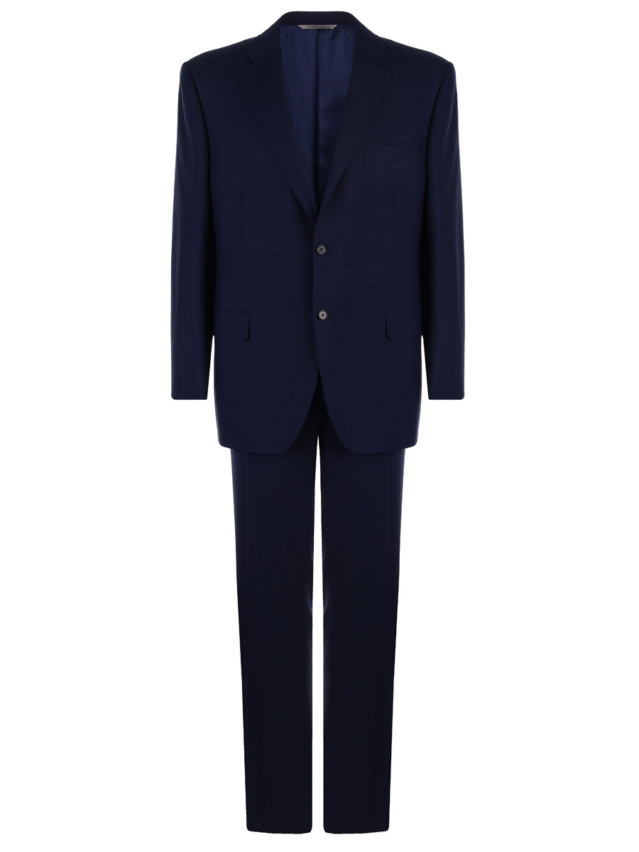 Костюм из шерсти. Однобортный пиджак на двух пуговицах. Брюки прямого кроя.