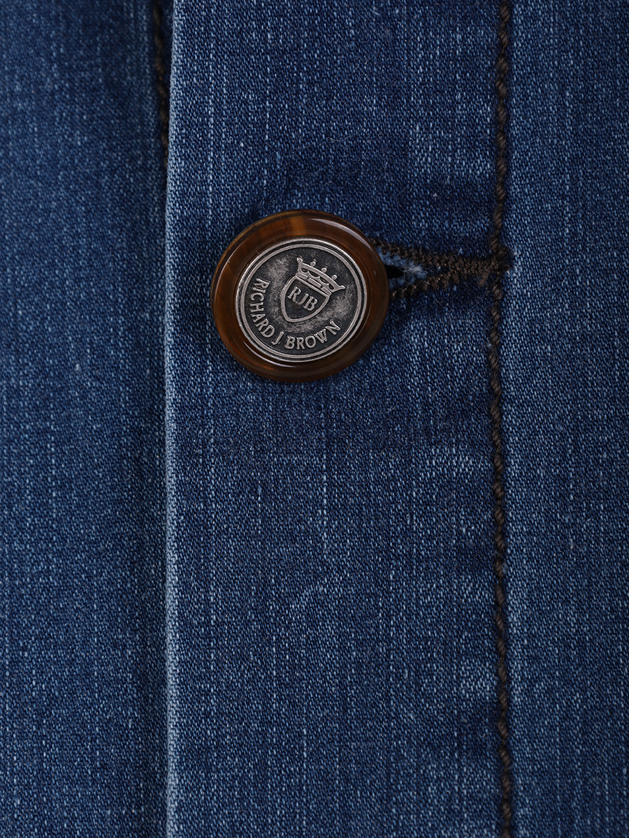 Синяя куртка из хлопкового денима от RICHARD J BROWN. Модель полуприлегающего кроя с длинными рукавами, отложным воротником, прорезными карманами и застежкой на пуговицы. Куртка составит компанию как лаконичным брюкам, так и джинсам.