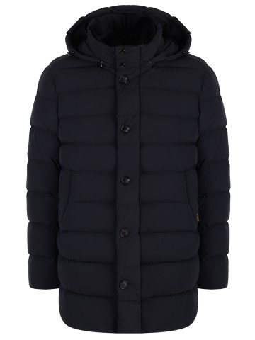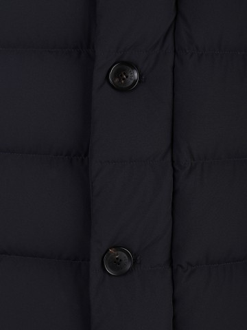 Пуховик прямого кроя в виде двубортного жакета от бренда Moorer. Модель выполнена из прочного полиэстера и покрыта водонепроницаемым составом. Двойная застежка на молнию и на пуговицы защитит от проникновения ветра. Куртка наполнена гусиным пухом, сохраняющим тепло до -12°. Съемный воротничок выполнен из шерсти овчины.