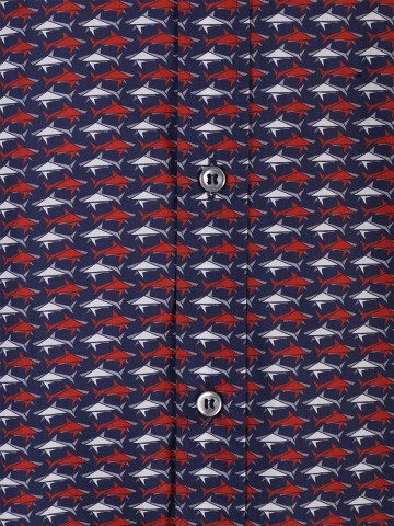Рубашка Paul & Shark из весенне-летней коллекции сочетает классический крой с морской эстетикой бренда. Прямой силуэт с воротником баттен-даун и нагрудным карманом демонстрирует традиционный подход, а практичная темно-синяя подкладка воротника с узором добавляет скрытую деталь. Вертикальные полосы рисунка создают эффект удлиненного силуэта, делая модель универсальной для разных типов фигур. В комплекте идет стильная маска в той же полосатой расцветке - функциональное дополнение, подчеркивающее заботу бренда о современных реалиях.