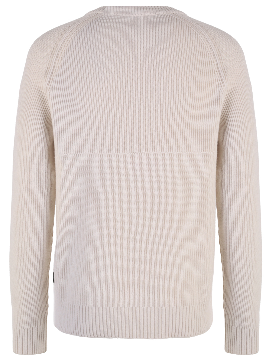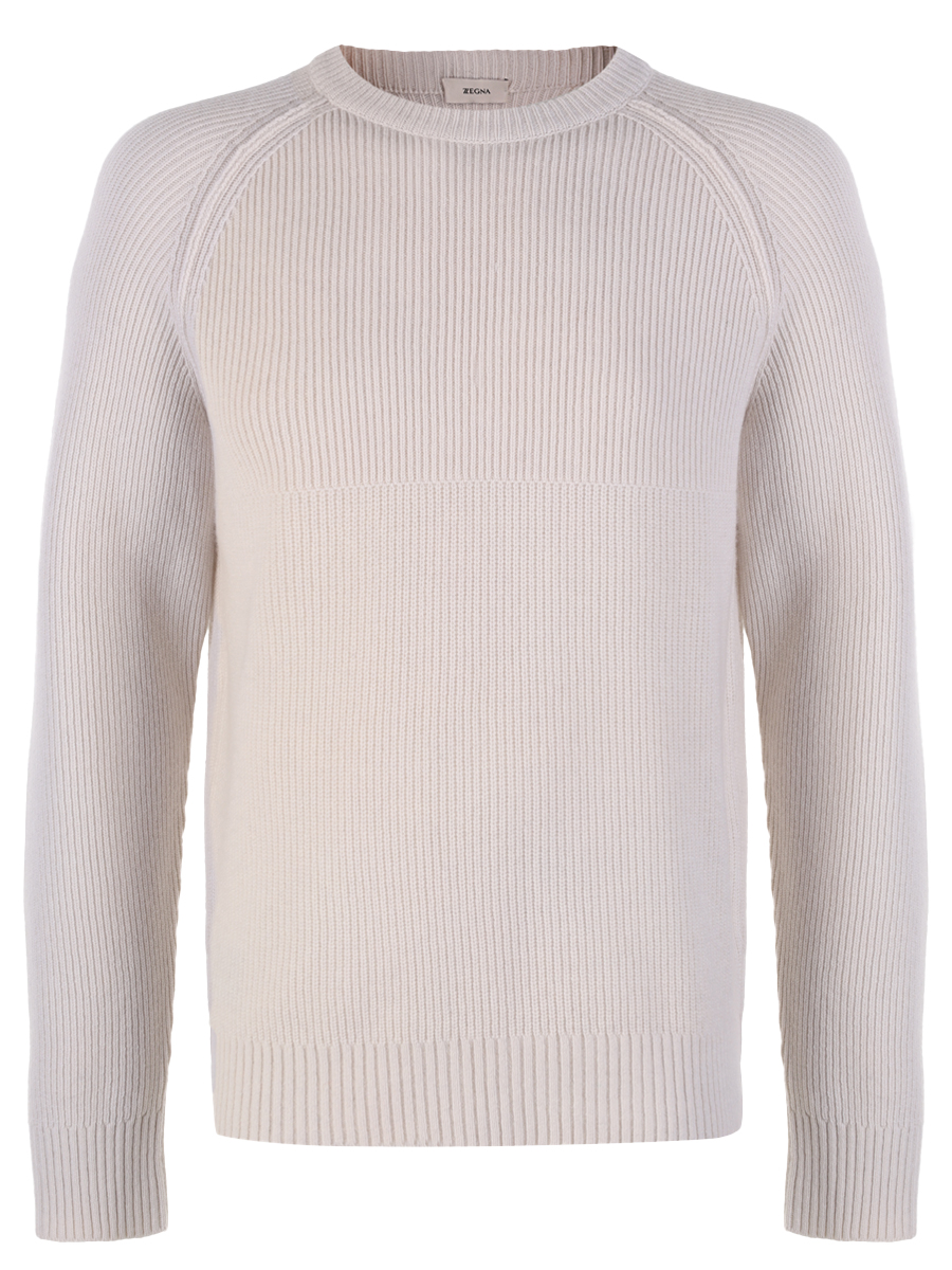 Модель с вырезом под горло и рукавами-реглан, изготовлен из натуральной шерсти с добавлением кашемира.