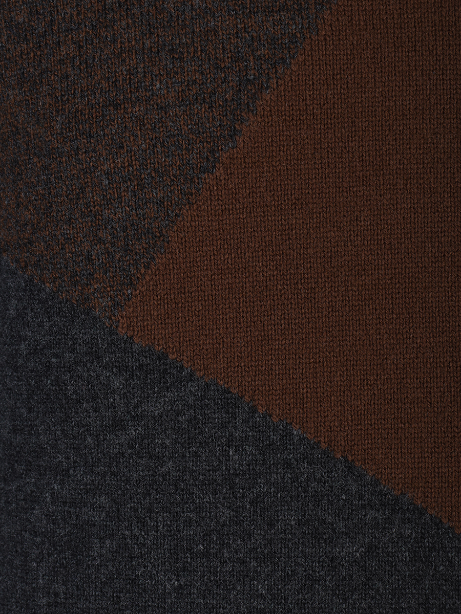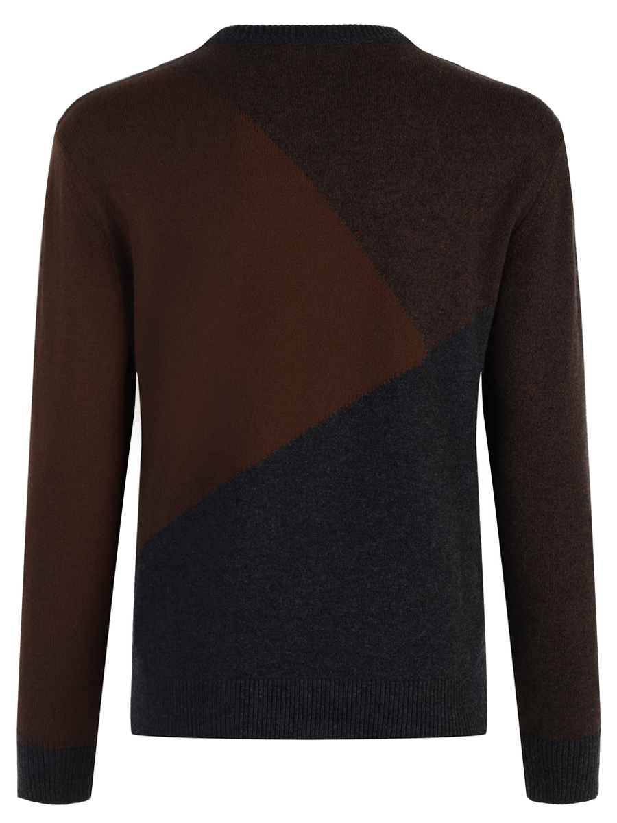 Тонкая вязка, стиль колор-блок, круглый вырез и длинные рукава.