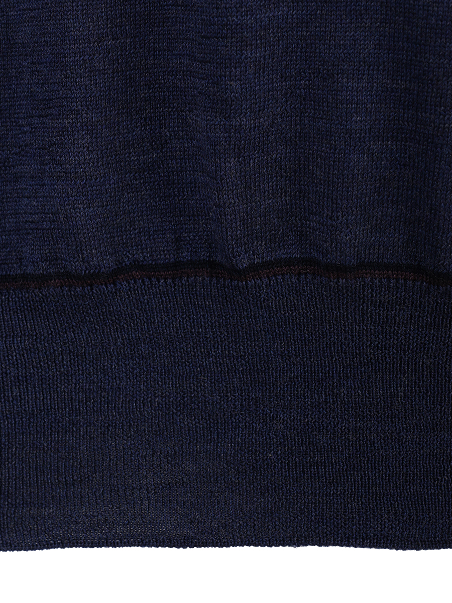 Мужской джемпер BERTOLO CASHMERE в синем оттенке, декорированный черным воротником и молнией, изготовленный из шерсти с добавлением шелка - это изысканный и стильный выбор для гардероба. Синий цвет придает изделию элегантность и классический вид, а декоративные элементы в виде черного воротника и молнии добавляют современности и оригинальности. Шерсть с добавлением шелка обеспечивает комфорт, мягкость и шелковистость материала. Дизайн джемпера BERTOLO CASHMERE отличается стильным исполнением и вниманием к деталям, что делает это изделие уникальным. Этот мужской джемпер станет элегантным дополнением к вашему стилю, подчеркивая ваш безупречный вкус и индивидуальность.