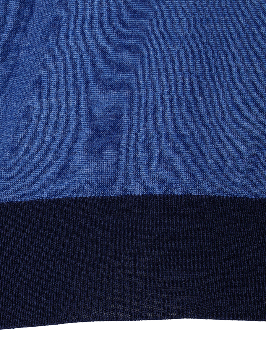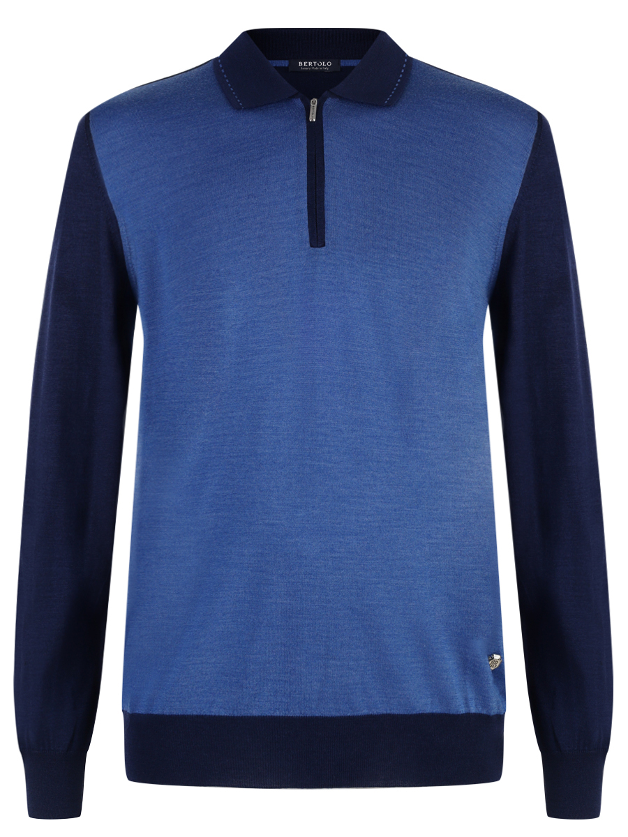 Мужской джемпер голубого цвета с контрастными синими рукавами, воротником и поясом от BERTOLO CASHMERE, выполненный из шерсти и шелка - это изысканный и стильный выбор для гардероба. Голубой цвет придает изделию свежесть и яркость, а контрастные синие детали добавляют оригинальности и интереса. Шерсть и шелк обеспечивают тепло, мягкость и изысканный блеск материала. Дизайн от BERTOLO CASHMERE отличается высоким качеством и вниманием к деталям, что делает каждое изделие особенным. Этот мужской джемпер станет стильным акцентом в вашем образе, подчеркивая вашу элегантность и хороший вкус.
