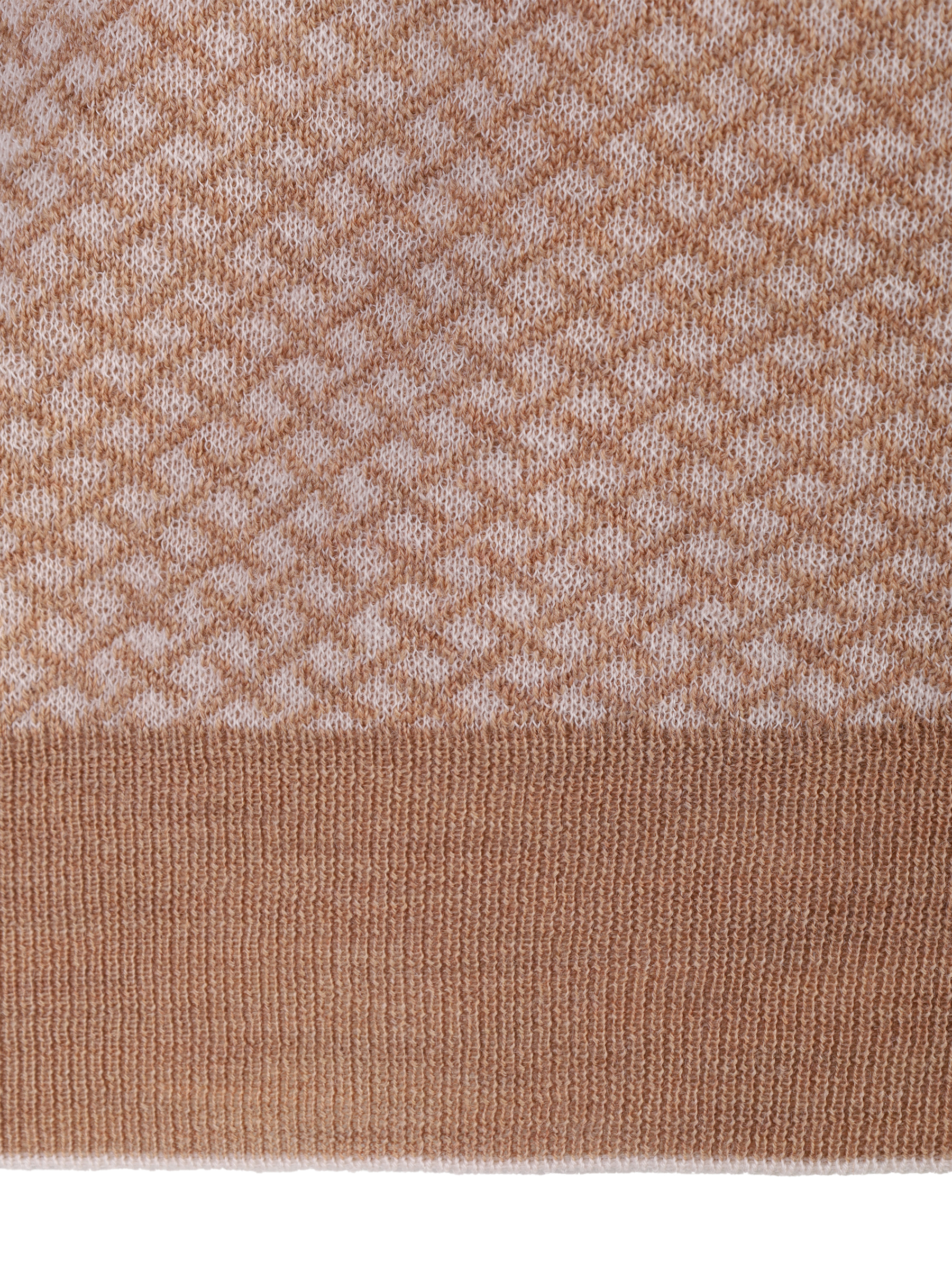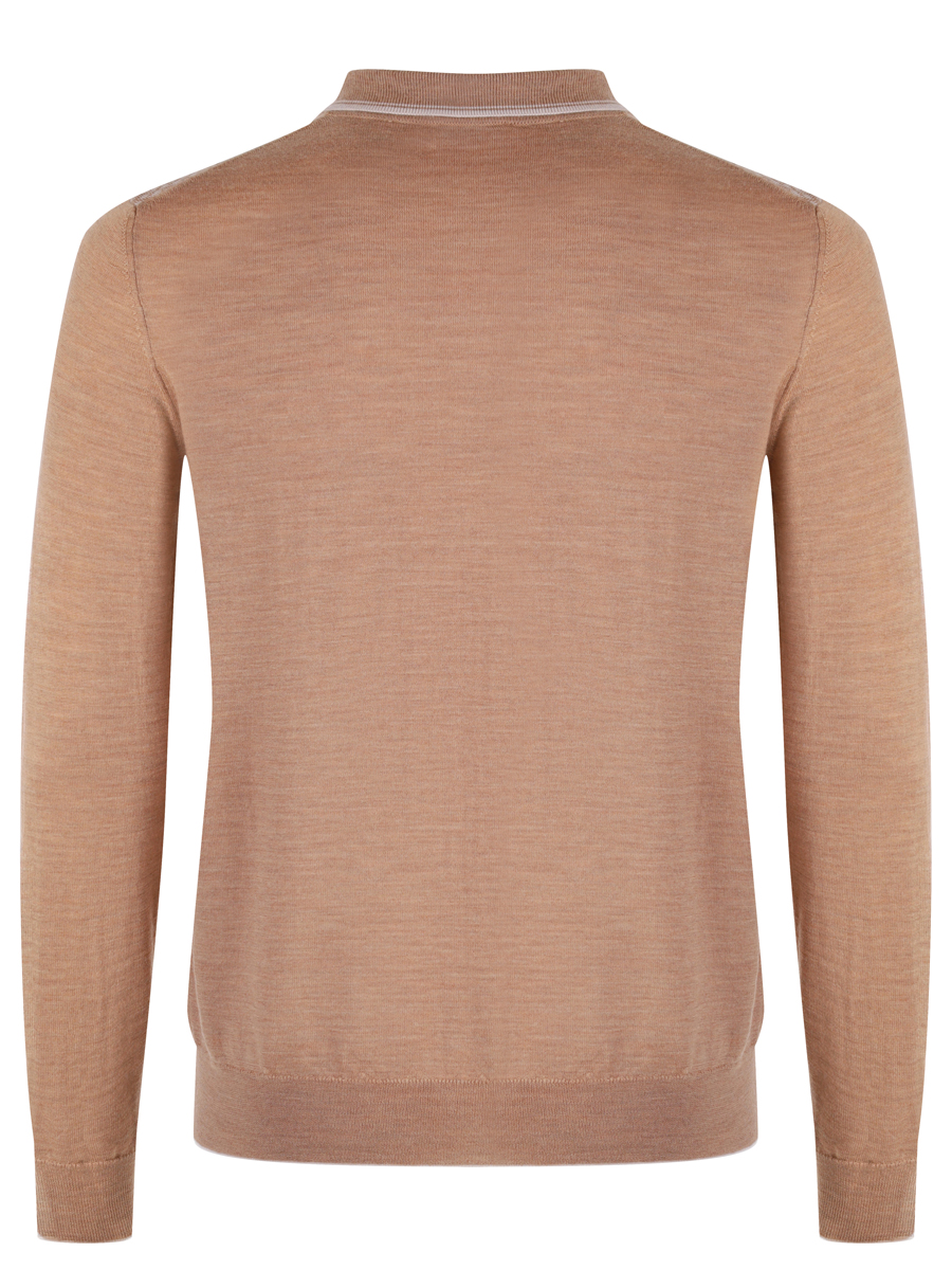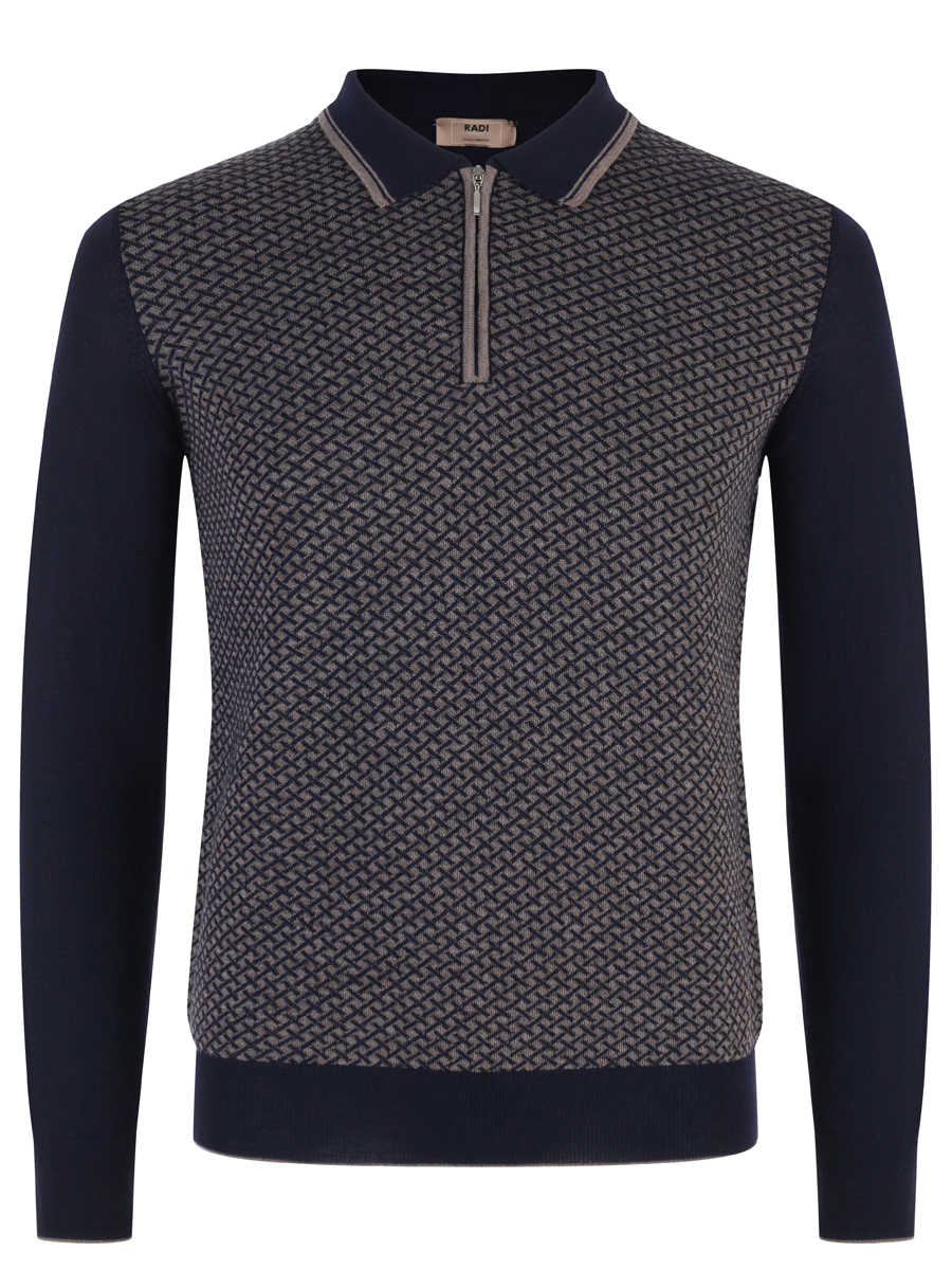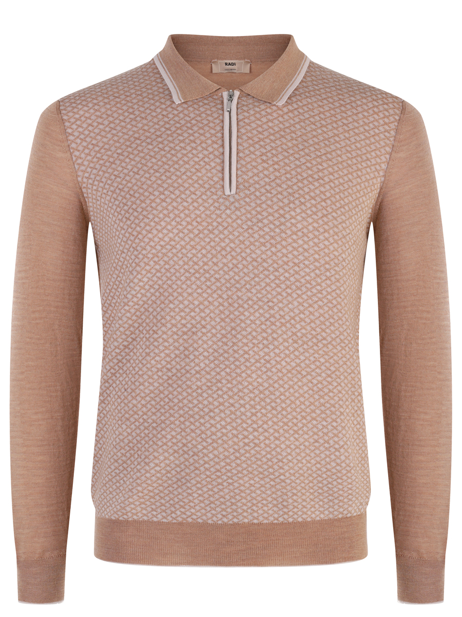 Мужской джемпер бежевого цвета с мелким геометрическим узором. Джемпер оснащен воротником-стойкой с застежкой на молнии, что придает ему элегантный и современный вид. По краям воротника,на манжете рукавов и нижнием краю джемпера виден рубчатый трикотаж, который обеспечивает хорошую посадку и аккуратный внешний вид. Материал джемпера мягкий и приятным на ощупь, что предполагает комфортное ношение. Этот джемпер может быть универсальным предметом гардероба, подходящим как для повседневного использования, так и для более официальных случаев, особенно если его сочетать с классическими брюками или джинсами.