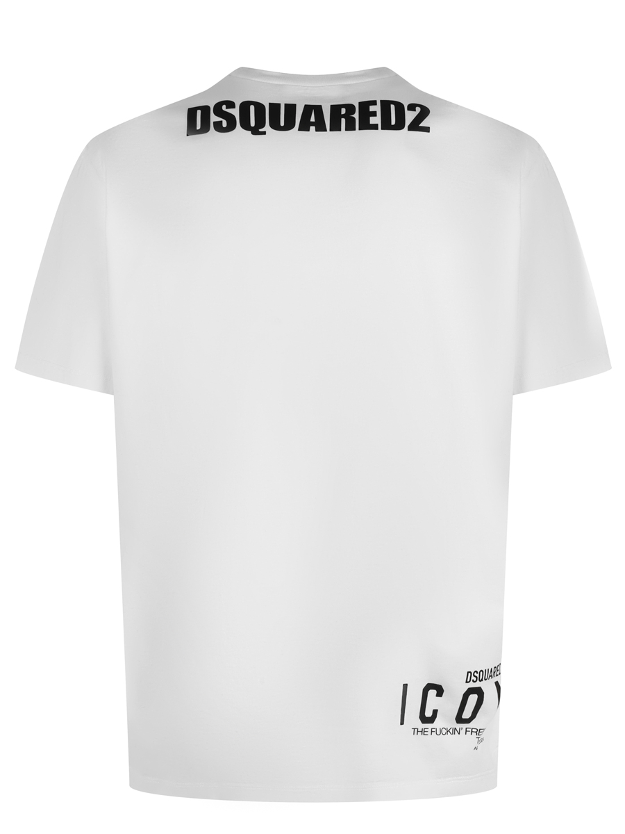 Хлопковая футболка с принтом от итальянского бренда DSQUARED2. Класcический крой, текстиль из качественных, натуральных волокон, привлекающее внимание оформление.