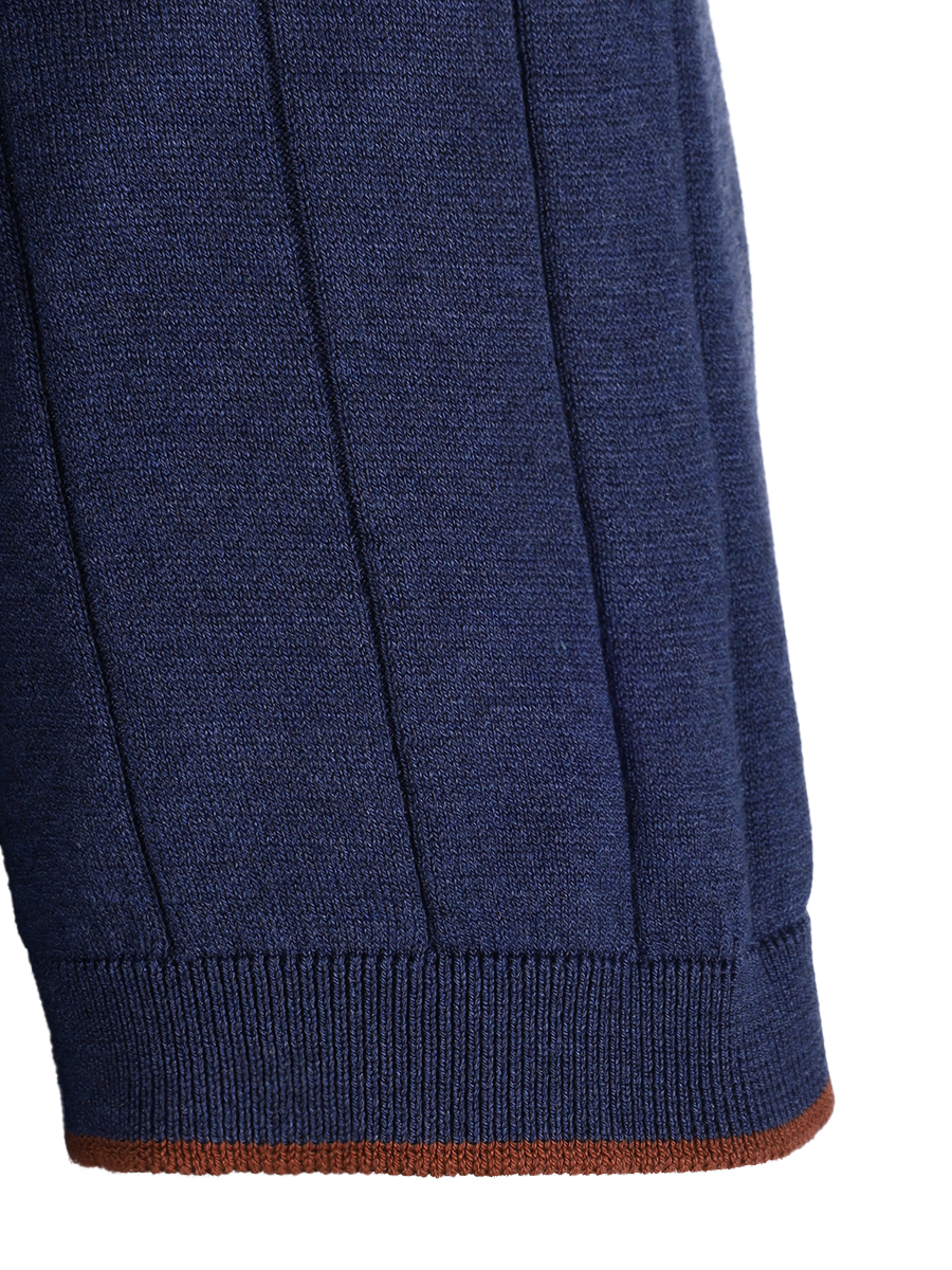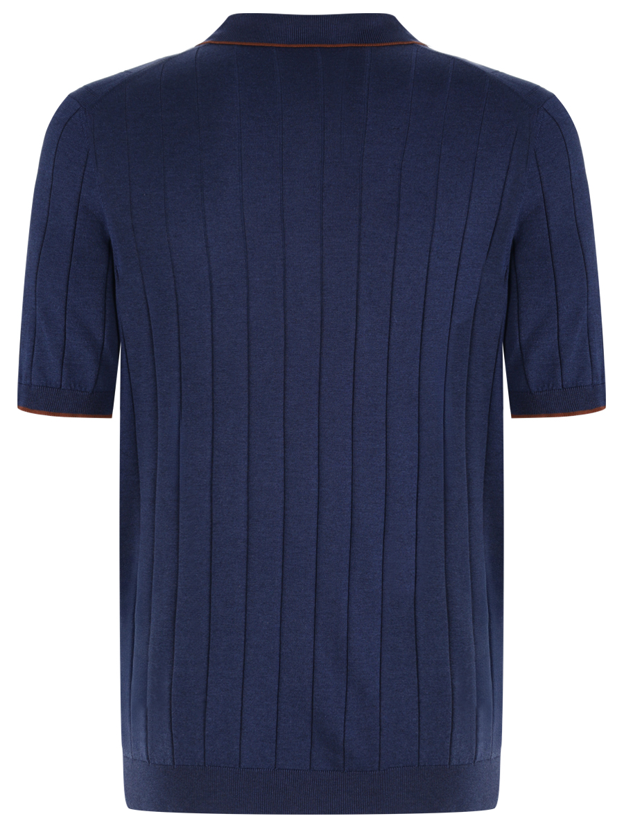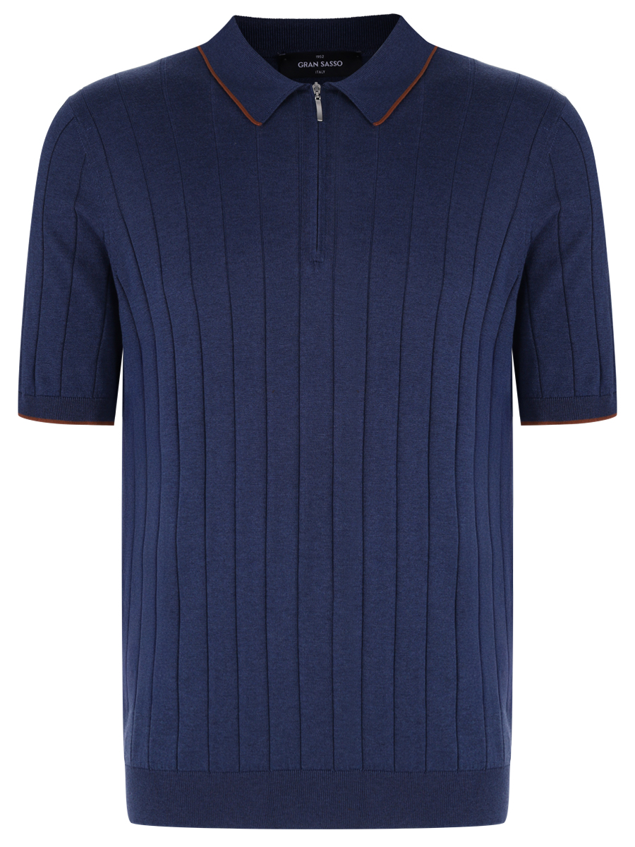 Поло из фактурного трикотажа на основе шелка от GRAN SASSO. Модель прямого кроя с короткими рукавами, рельефными манжетами, поясом и отложным воротником с контрастной окантовкой и застежкой-молнией на груди. Шелковое джерси почти не ощущается на теле, поддерживает на коже ощущение приятной прохлады и долго сохраняет безупречный вид.