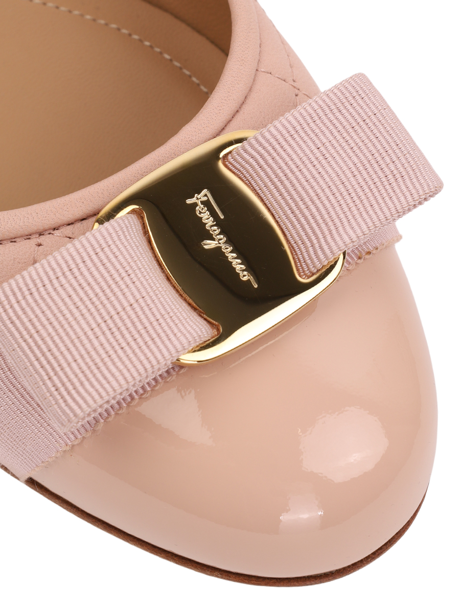 Кожаные, стеганые балетки с бантом и лаковым носком.
