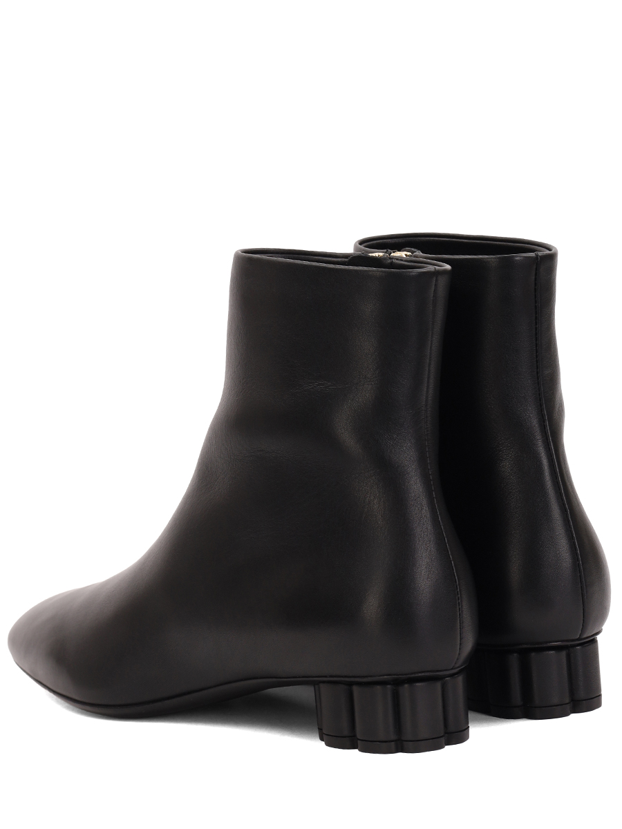 Кожаные ботильоны на маленьком фигурном каблуке.