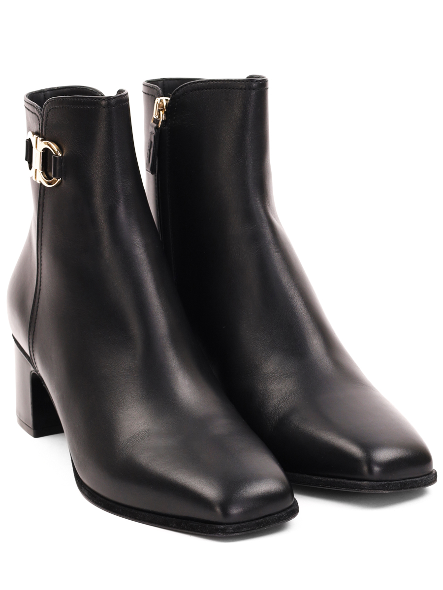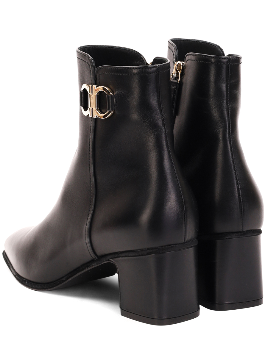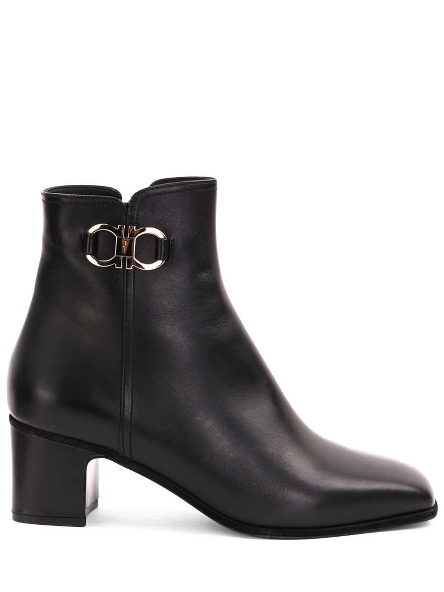 Геометрические элементы — изысканный стиль. Новые ботинки с двойным логотипом Gancini на щиколотке. Каблук средней длины — изящная высота для идеального комфорта в течение дня. Верх из телячьей кожи, многослойная кожаная подошва. Свидетельство абсолютного мастерства бренда.