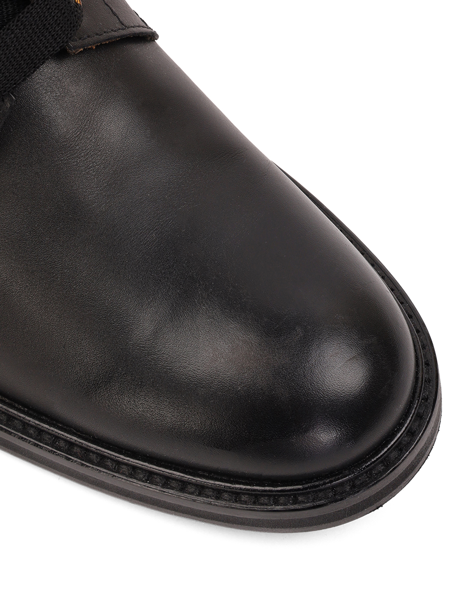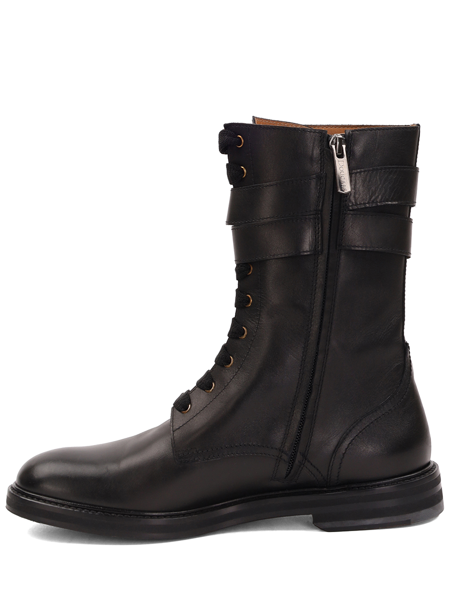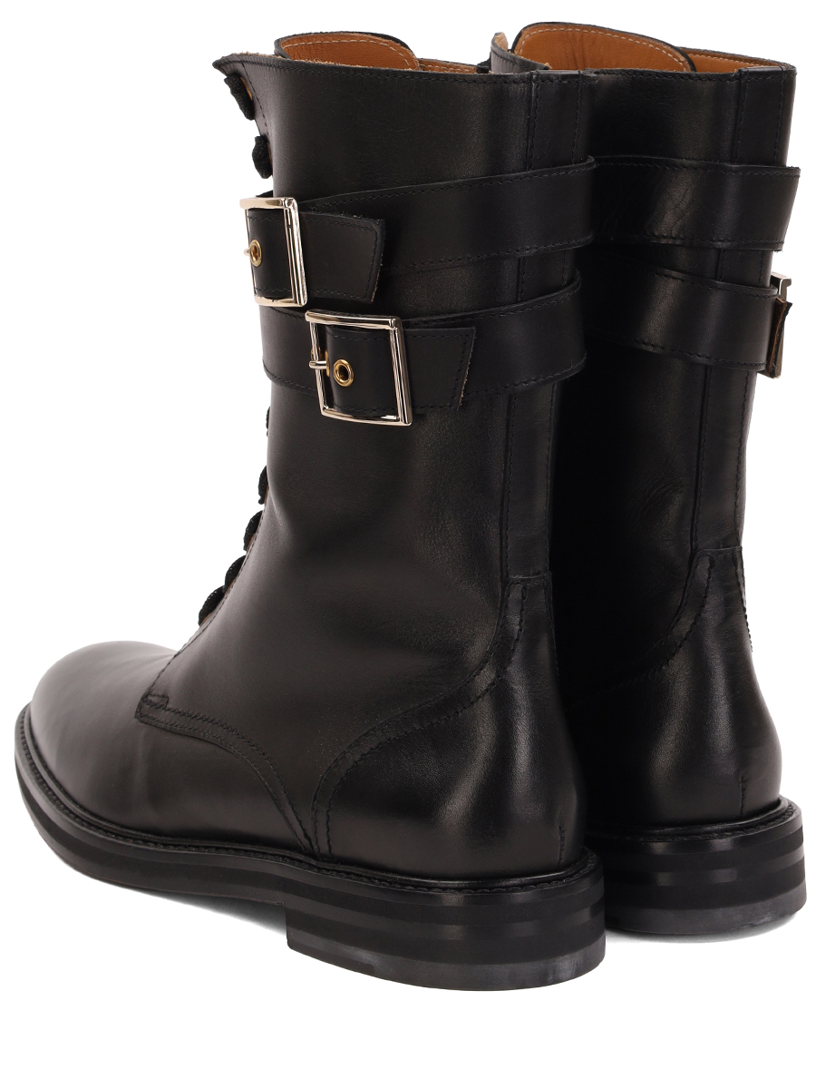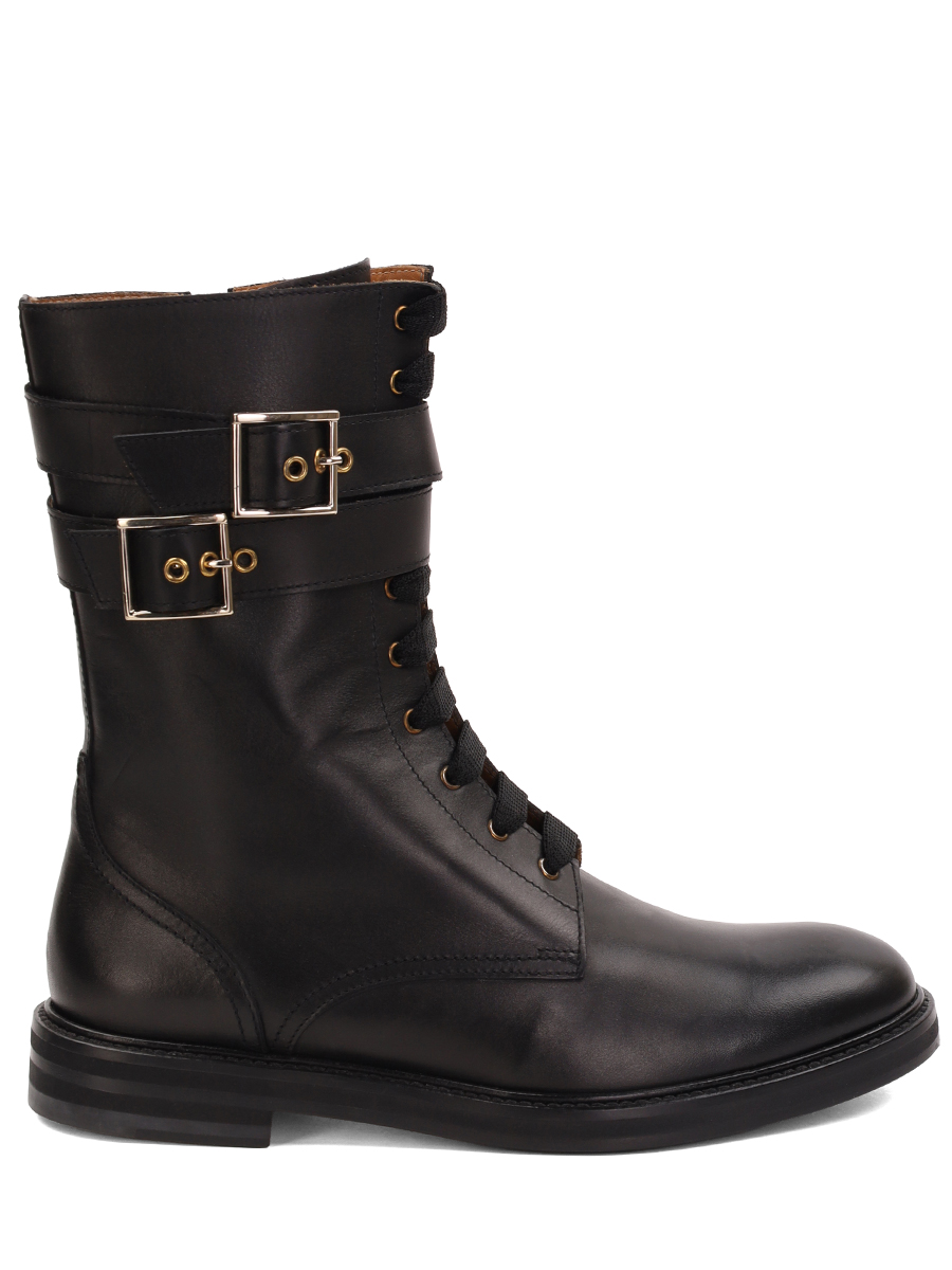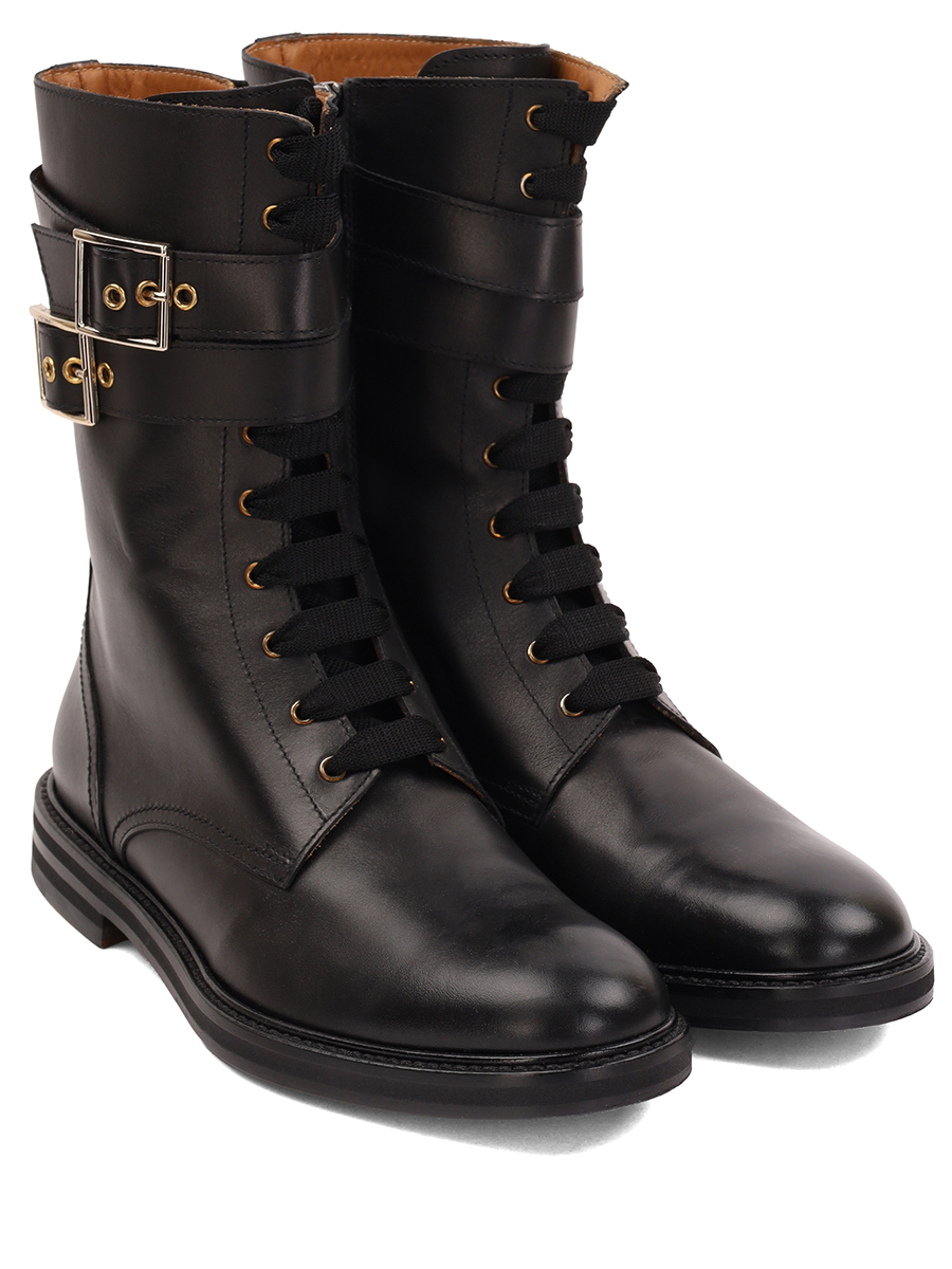 Кожаные ботинки на шнуровке с металлическими пряжками.