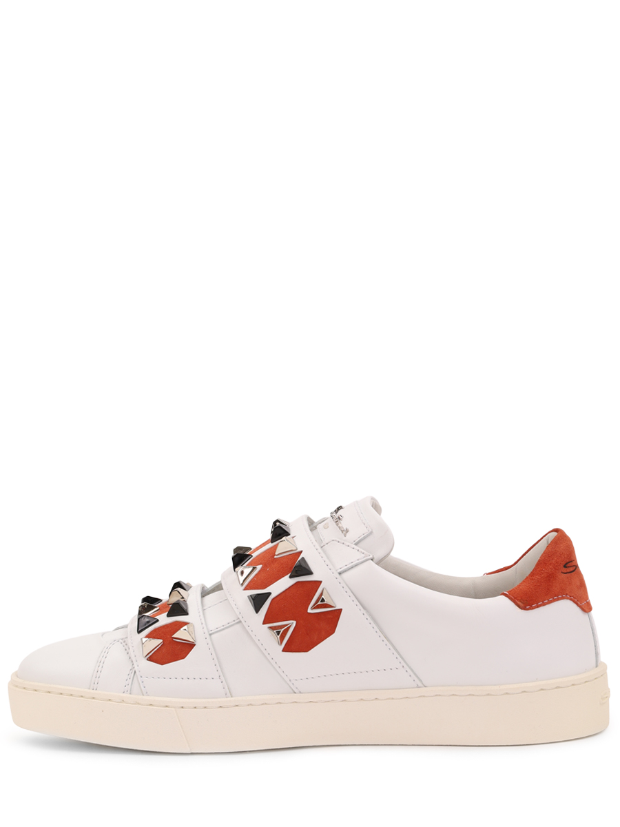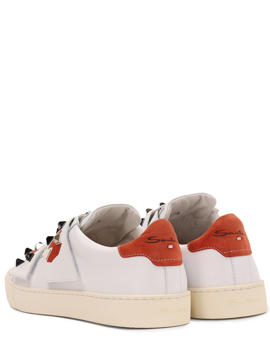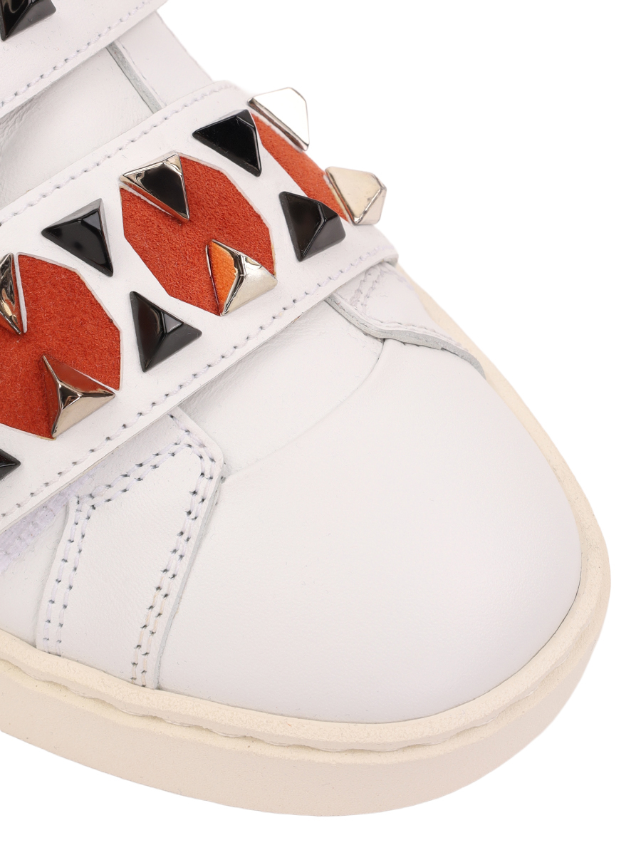 Кожаные кеды с застежкой на липучках, украшенных шипами-пирамидами.