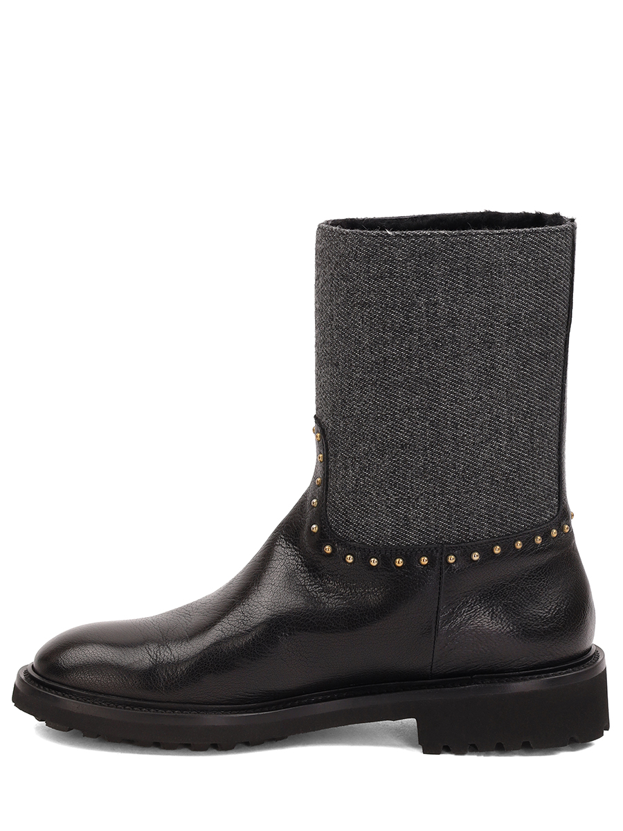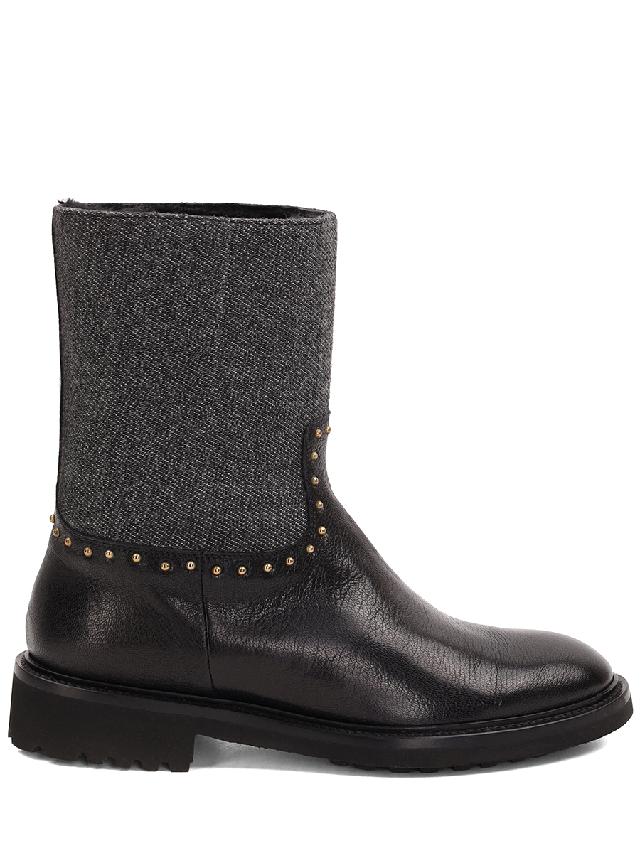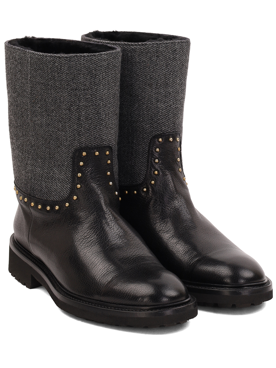 Кожаные сапоги с широким голенищем с металлическими кнопками.