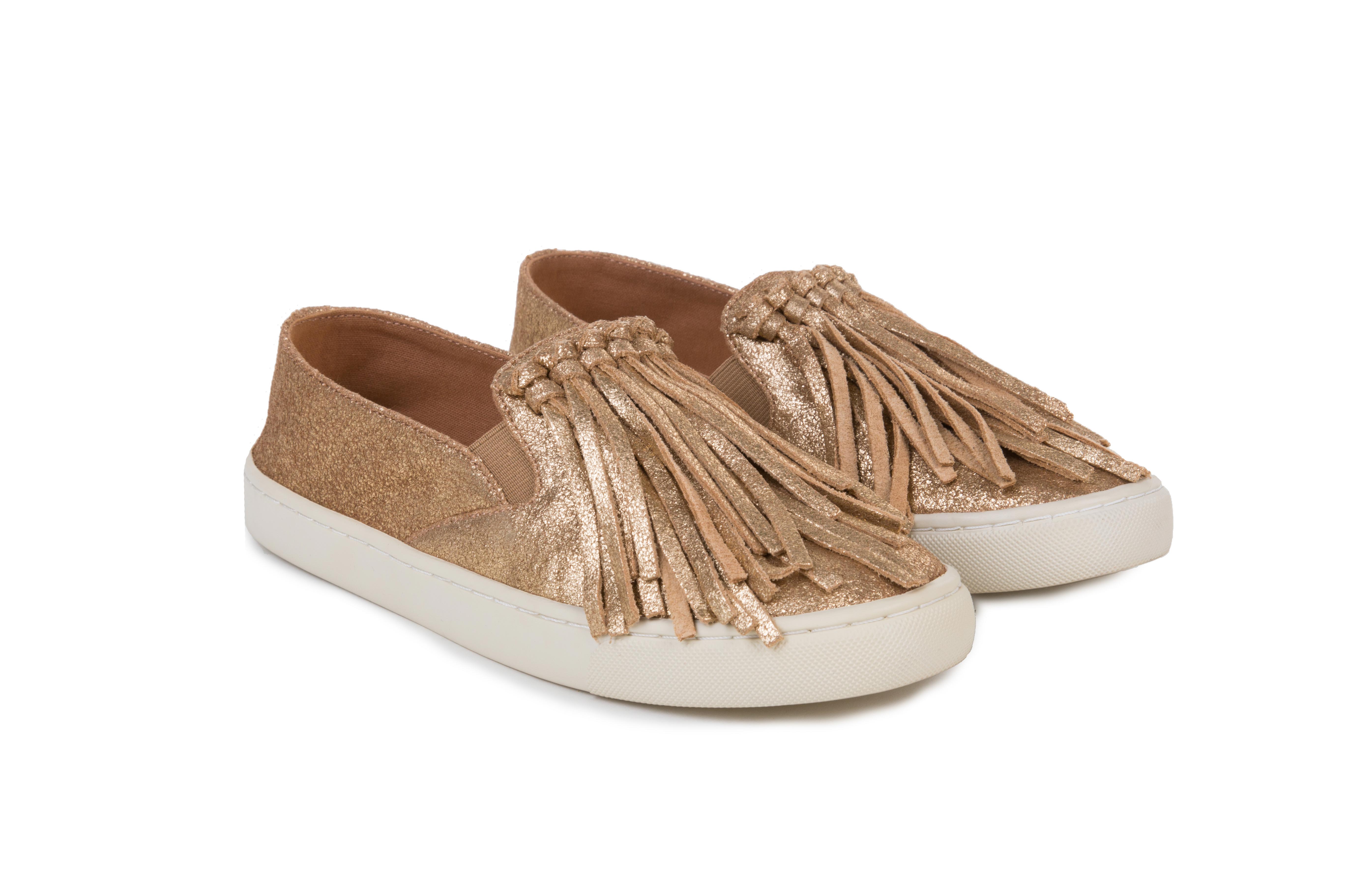 Слипоны из замши с легким блеском, с бахрамой на союзке. Подошва: резина.