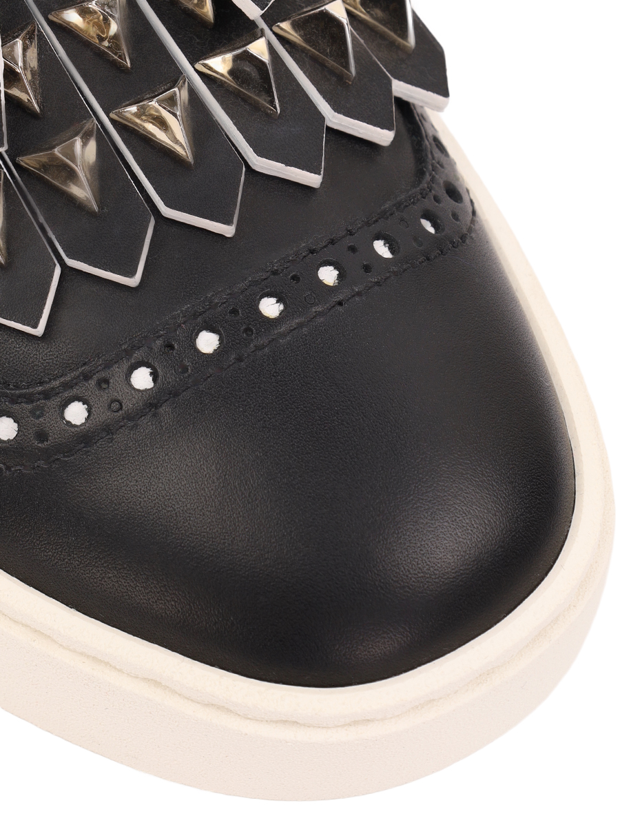 Кожаные слипоны с кистями и шипами.