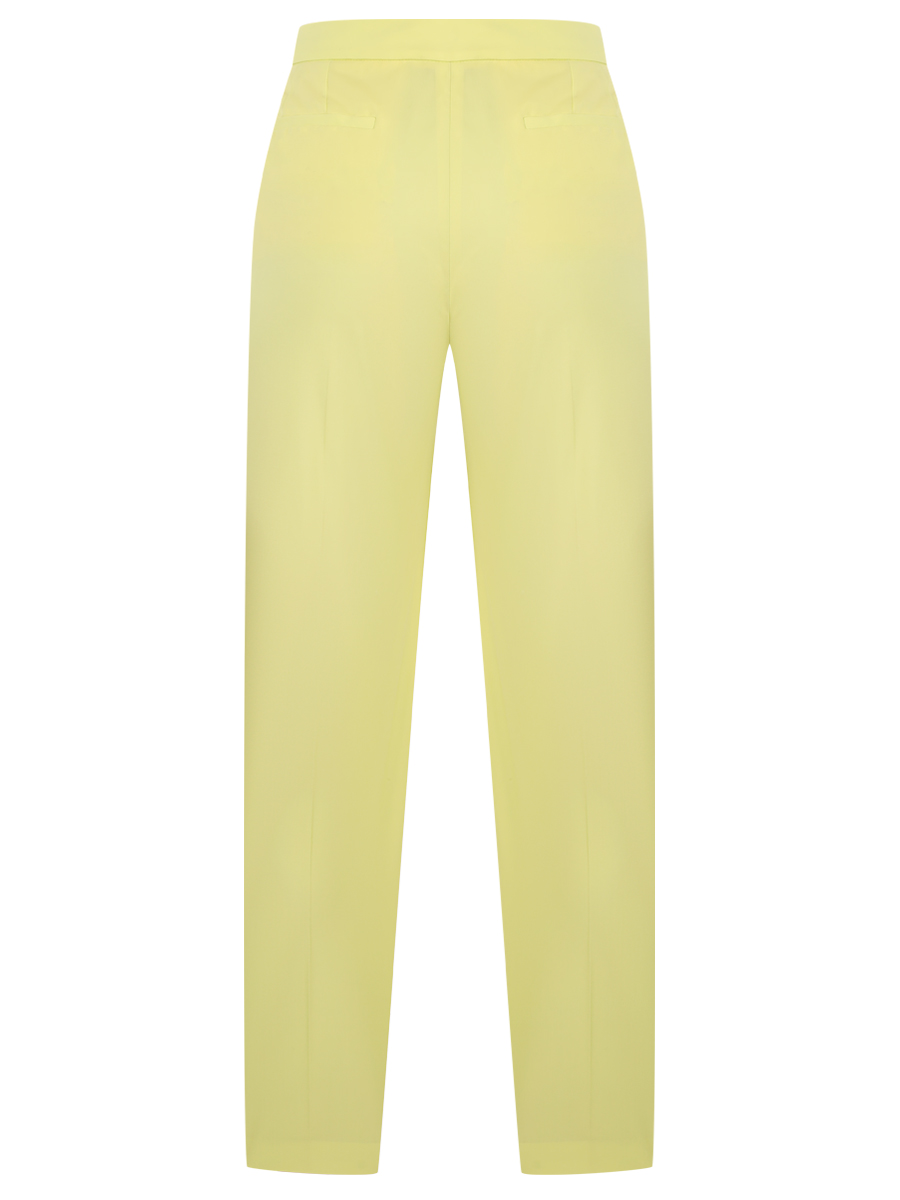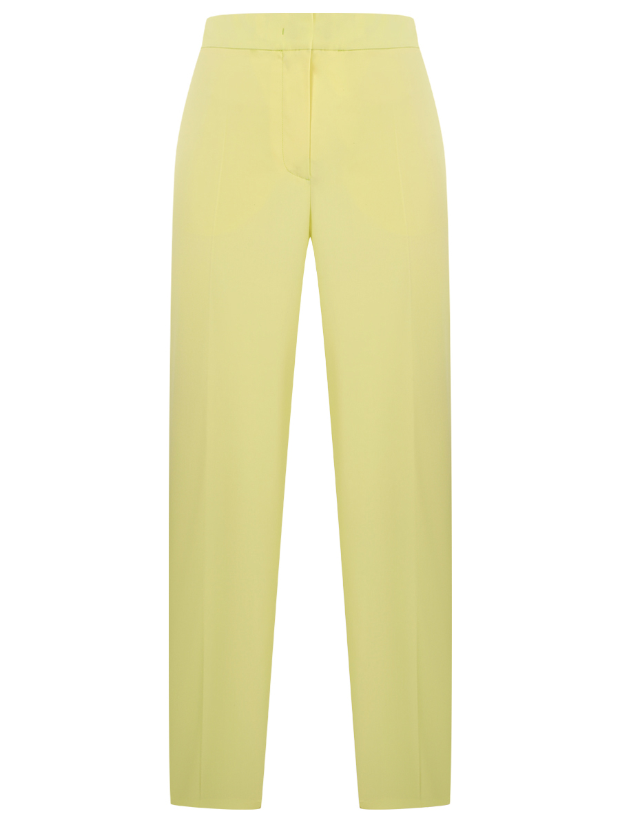 Брюки прямого кроя со стрелками и боковыми карманами.