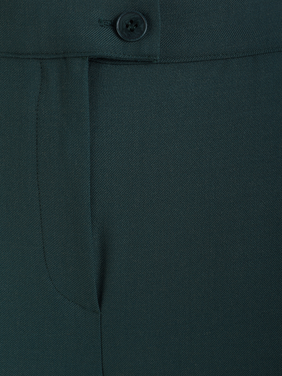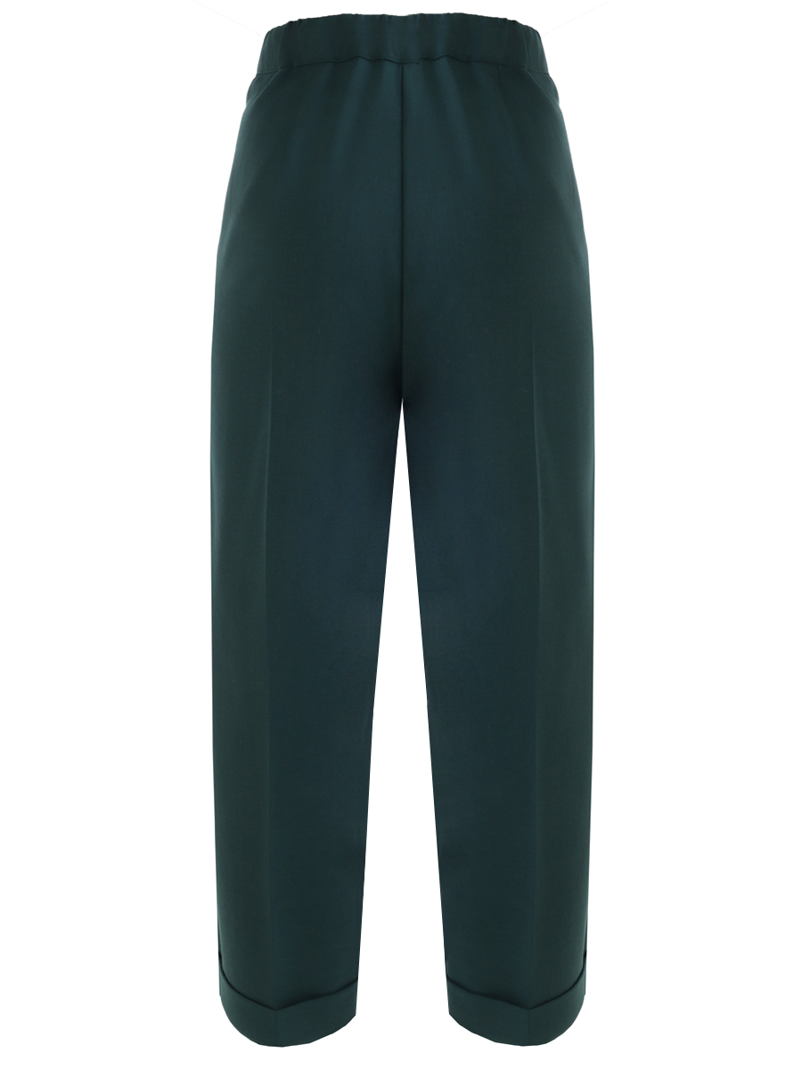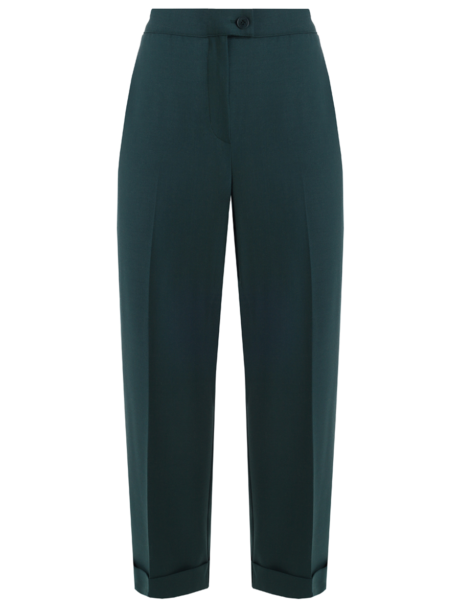 Женские брюки модели Remo от бренда MARINA RINALDI имеют насыщенный темно-зеленый цвет и выполнены в классическом стиле. Они обладают прямым кроем, что делает их универсальным предметом гардероба. У брюк есть зауженные штанины с манжетами у нижнего края, что добавляет изысканности и позволяет акцентировать обувь. Эти брюки отлично подойдут как для офиса, так и для повседневных мероприятий, легко сочетаясь с различными верхами от строгих блуз до кэжуал свитеров.