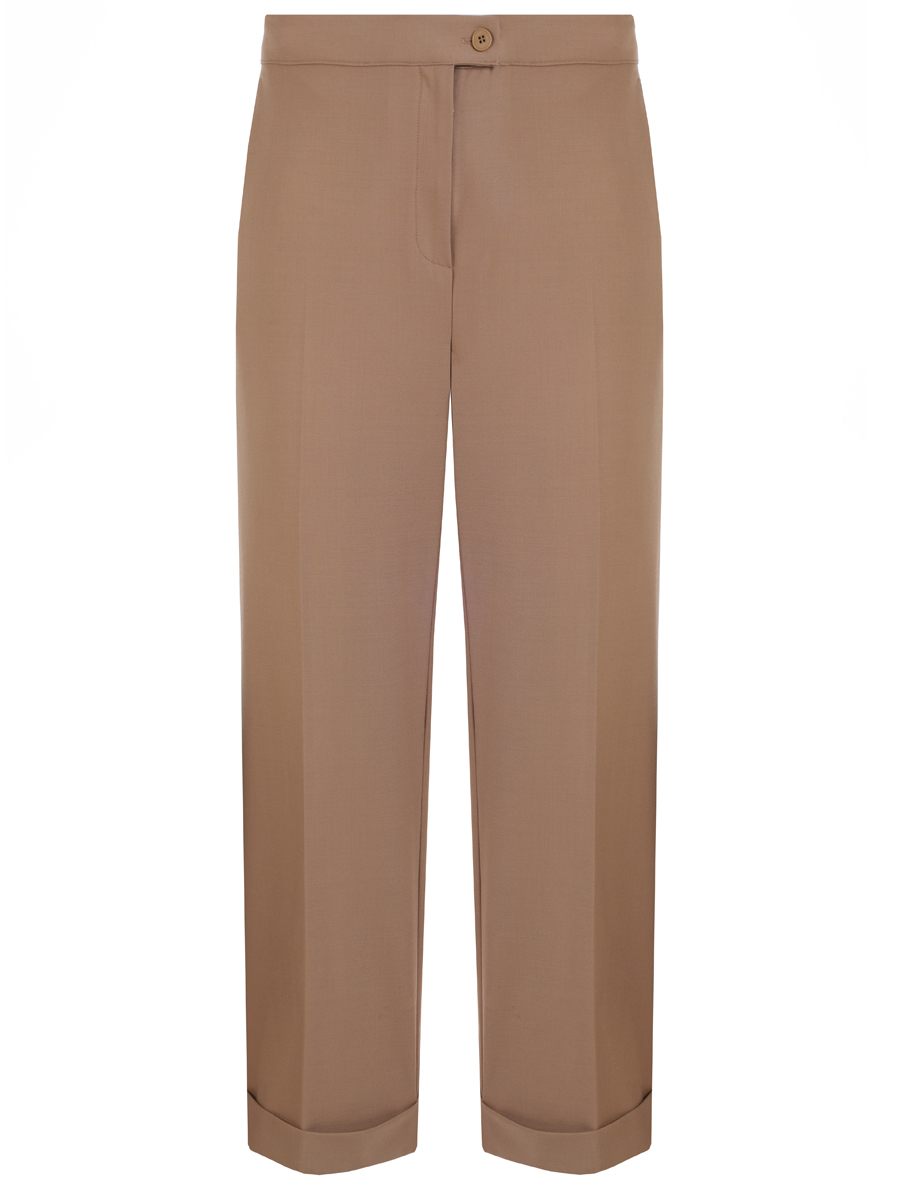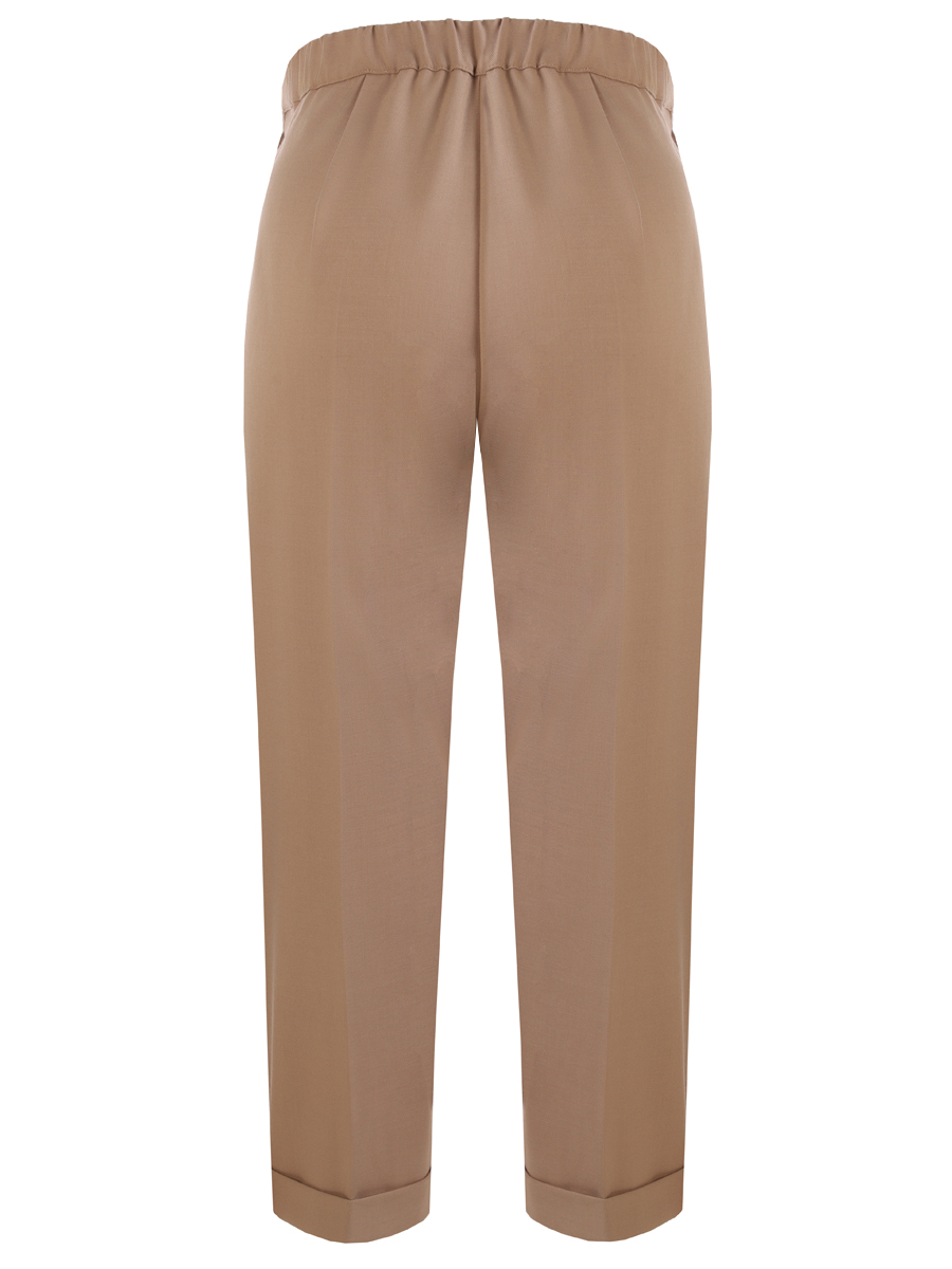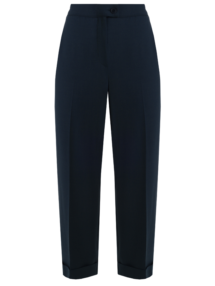 Женские брюки модели Remo от бренда MARINA RINALDI имеют насыщенный темно-зеленый цвет и выполнены в классическом стиле. Они обладают прямым кроем, что делает их универсальным предметом гардероба. У брюк есть зауженные штанины с манжетами у нижнего края, что добавляет изысканности и позволяет акцентировать обувь. Эти брюки отлично подойдут как для офиса, так и для повседневных мероприятий, легко сочетаясь с различными верхами от строгих блуз до кэжуал свитеров.