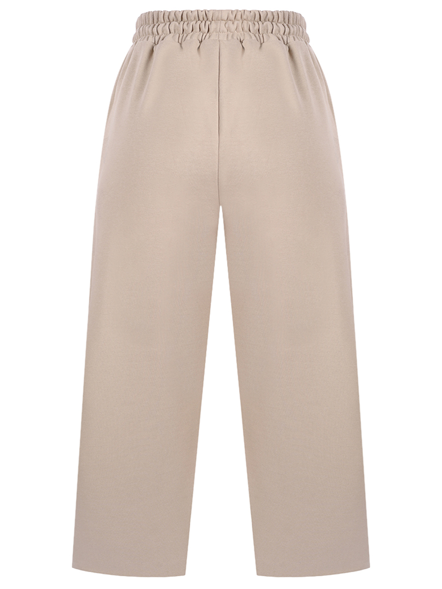 Модель свободного прямого кроя с эластичным поясом, прорезными карманами и логотипом на бедре.