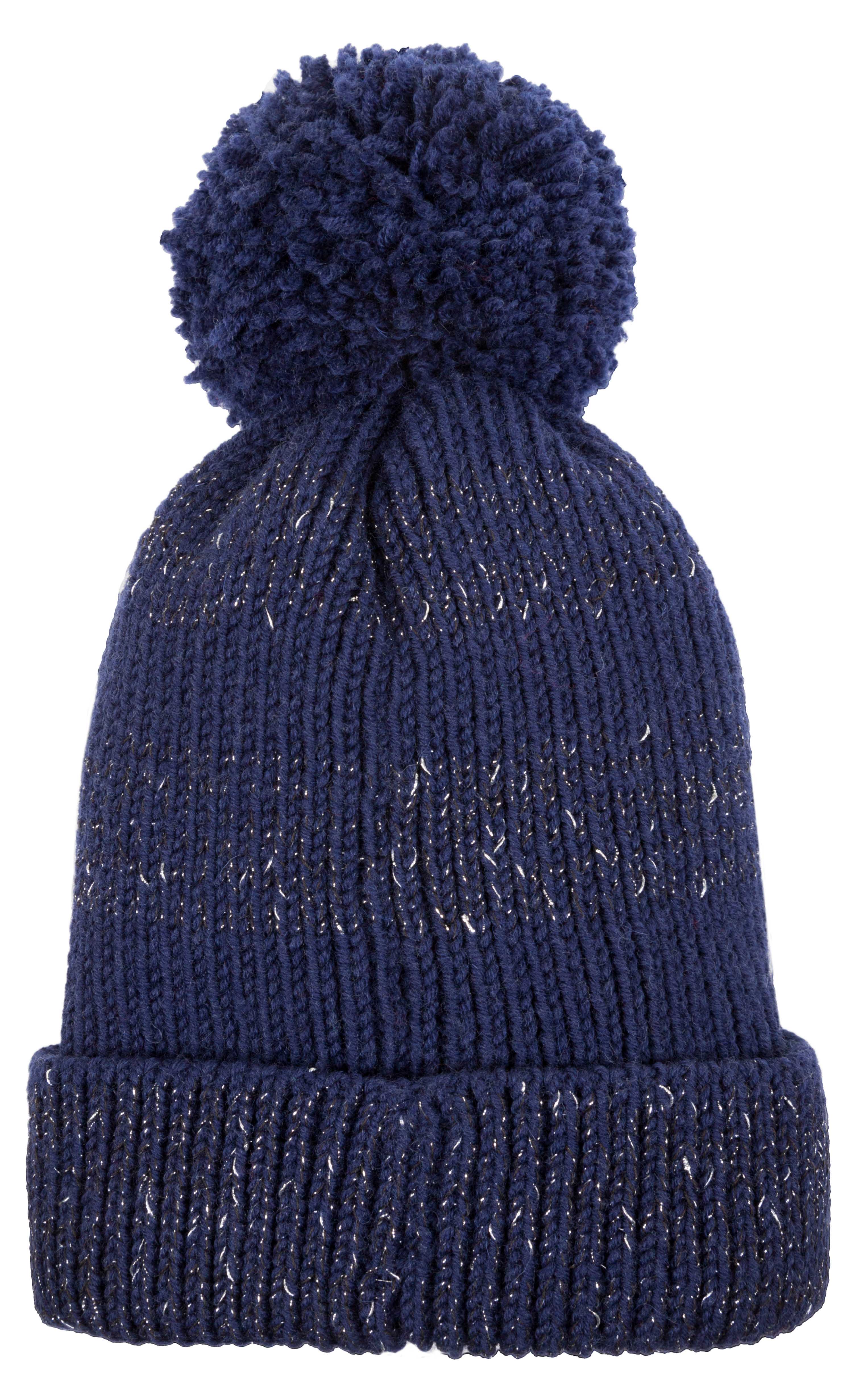 Шерстяная шапка- бини с люрексом и помпоном.