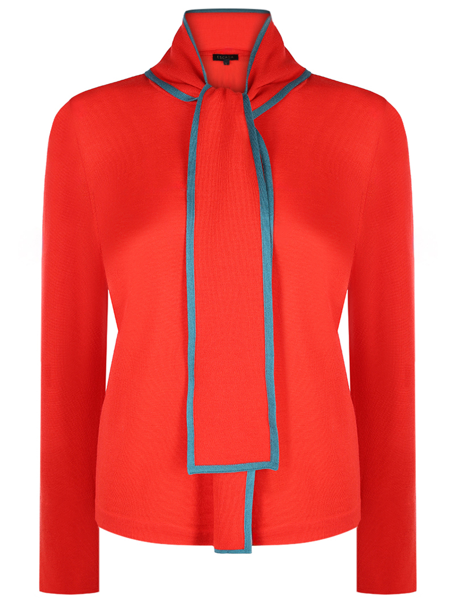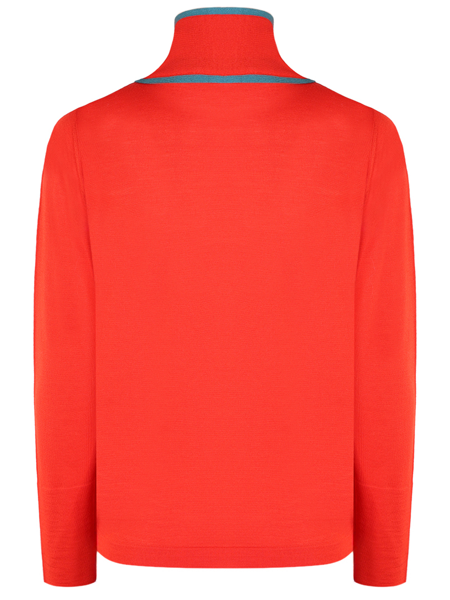 Шикарный джемпер красного цвета с круглым вырезом выполненный из 100% шерсти и шёлка. Благодаря этому он невероятно мягкий.