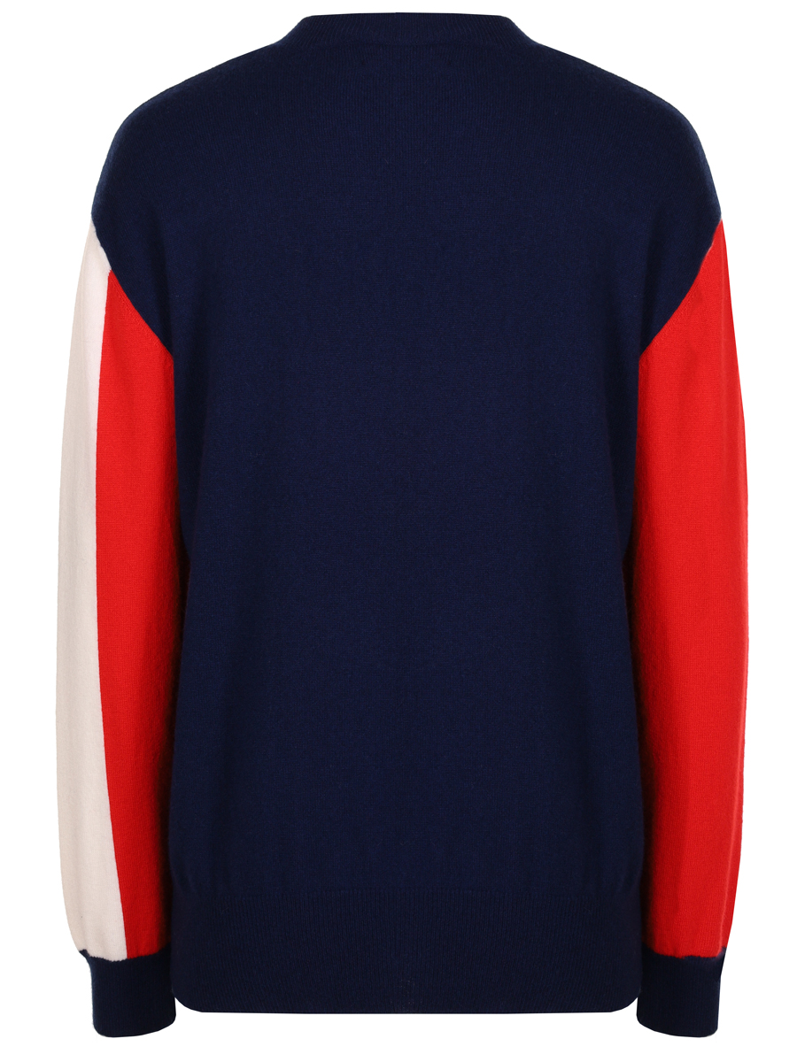 Джемпер в стиле колор-блок из шерсти и кашемира от SONIA RYKIEL. Модель свободного кроя со спущенной линией плеча, длинными рукавами с логотипом, рельефными манжетами, поясом и отделкой круглого выреза горловины. Сочетание шерсти и кашемира придает джемперу исключительную мягкость и тепло, обеспечивая непревзойденный комфорт.