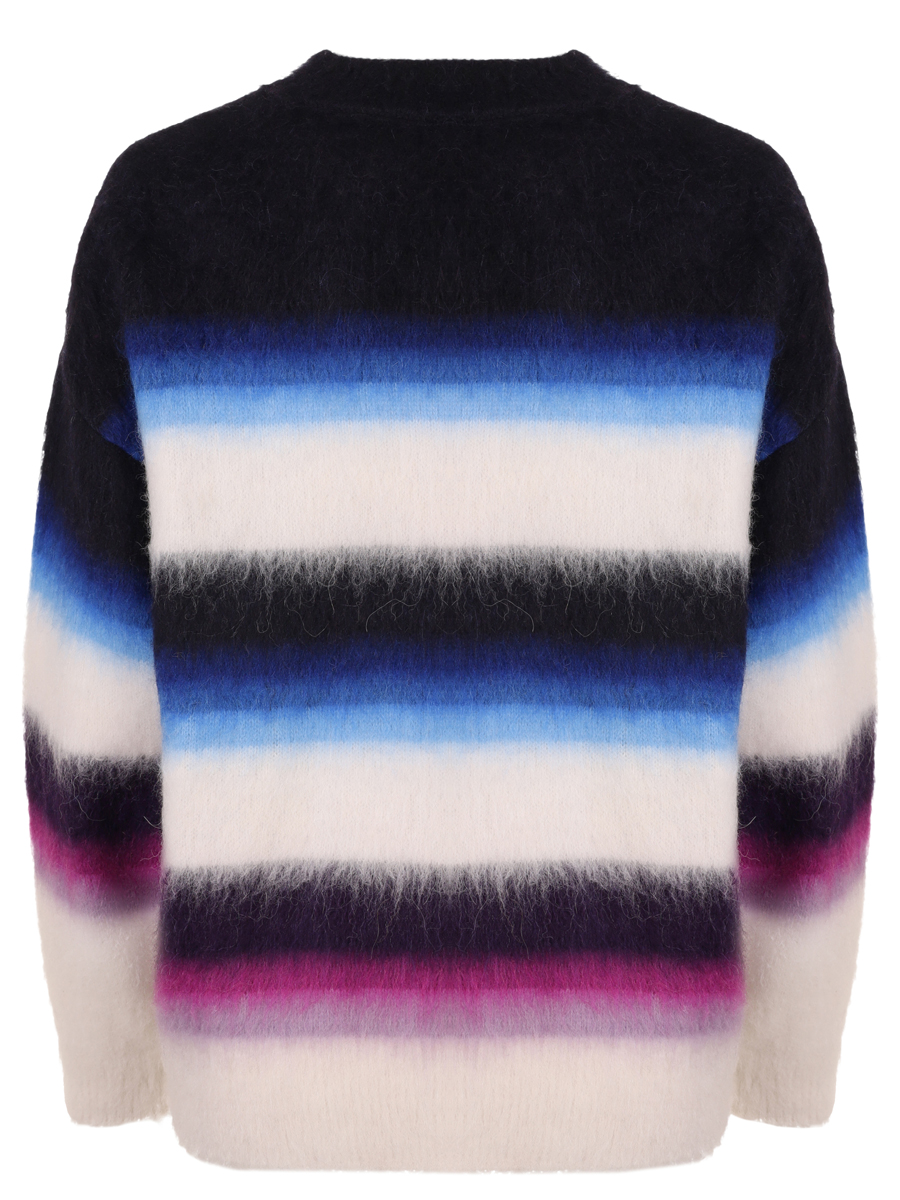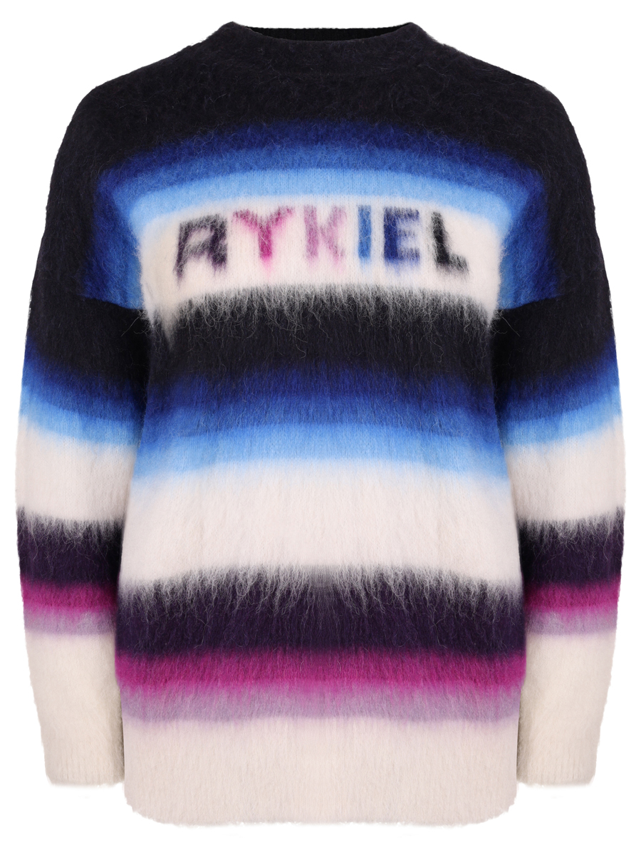 Джемпер в полоску из смесовой шерсти от SONIA RYKIEL. Модель свободного кроя со спущенной линией плеча, длинными рукавами, круглым вырезом горловины и логотипом на груди. Шерсть в составе отлично сохраняет тепло, а благодаря синтетическим волокнам изделие не вытянется со временем и долго не потеряет безупречный вид.