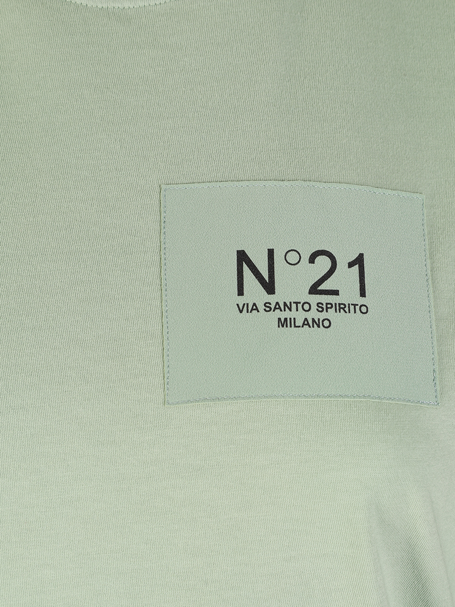 Футболка №21 из мягкого хлопка — универсальная основа для создания стильных повседневных образов. Прямой крой с короткими рукавами и круглым вырезом горловины обеспечивает комфорт и свободу движений, а нашивка с логотипом на груди добавляет узнаваемый акцент.