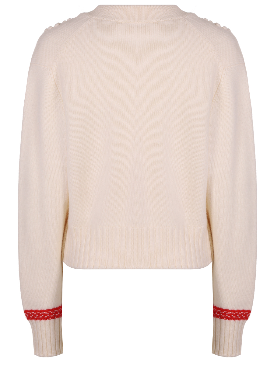 Кремовый кардиган SONIA RYKIEL из мягкой шерсти фактурной вязки — воплощение парижской небрежной элегантности. Прямой крой со спущенной линией плеча создает расслабленный силуэт, а рельефные манжеты и пояс подчеркивают продуманность дизайна. Застежка на пуговицы и фирменная монограмма на груди добавляют модели узнаваемости, сохраняя при этом сдержанность. Плотная вязка из качественной шерсти обеспечивает тепло и уют, делая кардиган идеальным для прохладных дней.