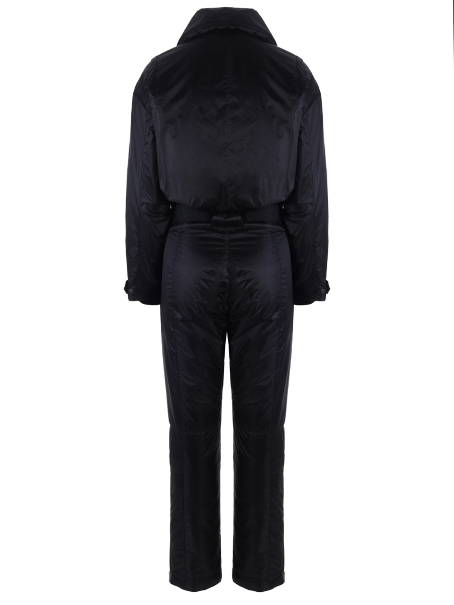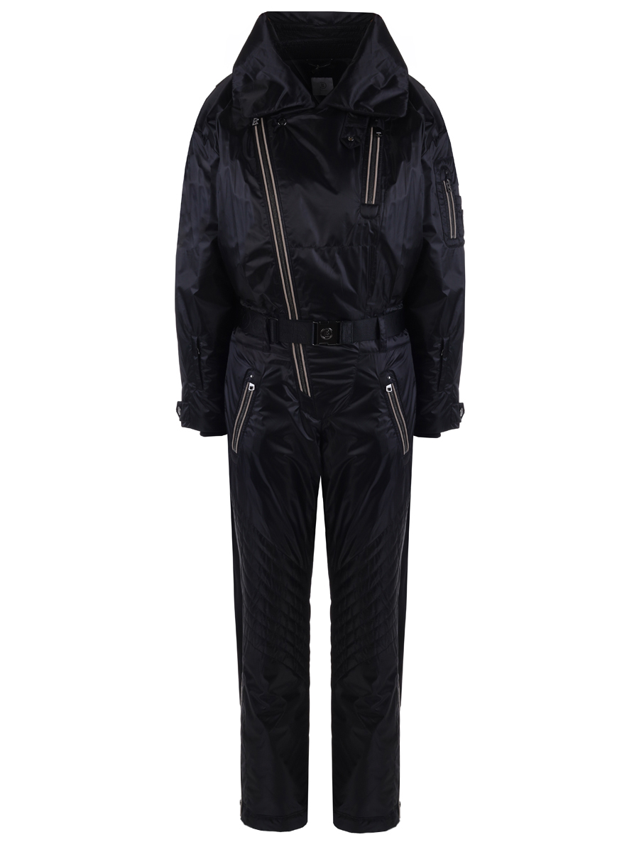 Черный комбинезон BOGNER с диагональной застежкой-молнией воплощает фирменный альпийский стиль бренда. Модель отличается продуманной эргономикой: пять функциональных карманов (включая специальный для скипасса на рукаве) с контрастной окантовкой серо-бежевого оттенка. Удобные регулировки - манжеты на кнопках и сужение брючин молнией - позволяют адаптировать комбинезон под любую активность. Узнаваемая литера "B" на рукаве завершает лаконичный дизайн, сочетающий технические решения с элегантной цветовой гаммой. Идеальный выбор для горнолыжного отдыха и городских прогулок в холодный сезон.