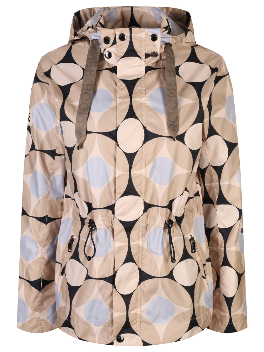 Куртка-ветровка из весенне-летней коллекции немецкого бренда BOGNER. Тонкая, непромокаемая модель с отстегивающимся капюшоном, кулиской в районе талии, боковыми и внутренним карманами. Рукава дополнены патами на кнопках, капюшон - кулиской с широкой лентой. При изготовлении изделия использовалась только брендированная фурнитура. Застегивается куртка на молнию прикрытую планкой.