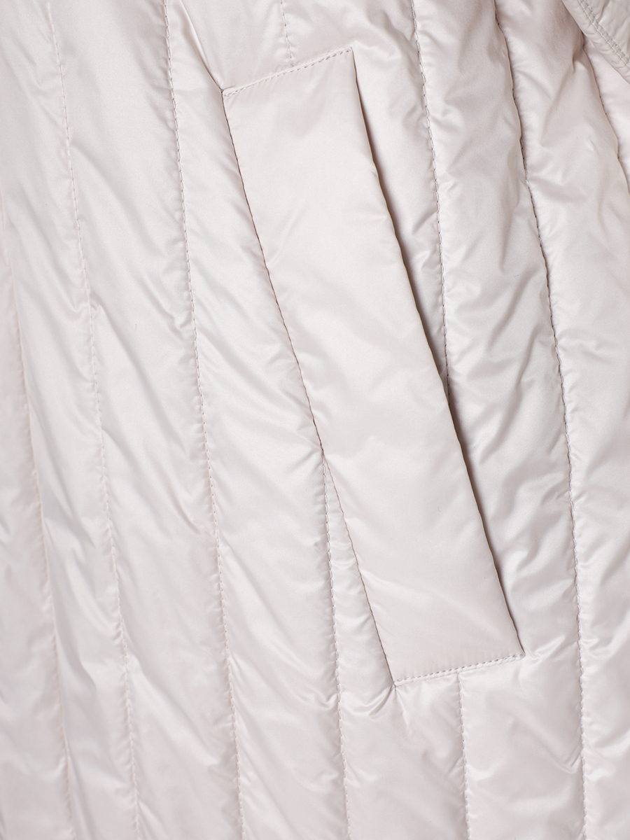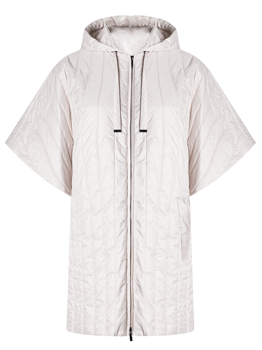 Стеганая куртка Marina Rinaldi воплощает современный взгляд на функциональную элегантность. Модель выполнена из лёгкого, но тёплого материала с диагональной стёжкой, создающей изысканный визуальный ритм. Свободный крой и укороченные рукава придают силуэту лёгкость и универсальность, а капюшон добавляет практичности. Мягкий жемчужный оттенок подчеркивает изысканность ткани и легко сочетается с повседневным и кэжуал-гардеробом.