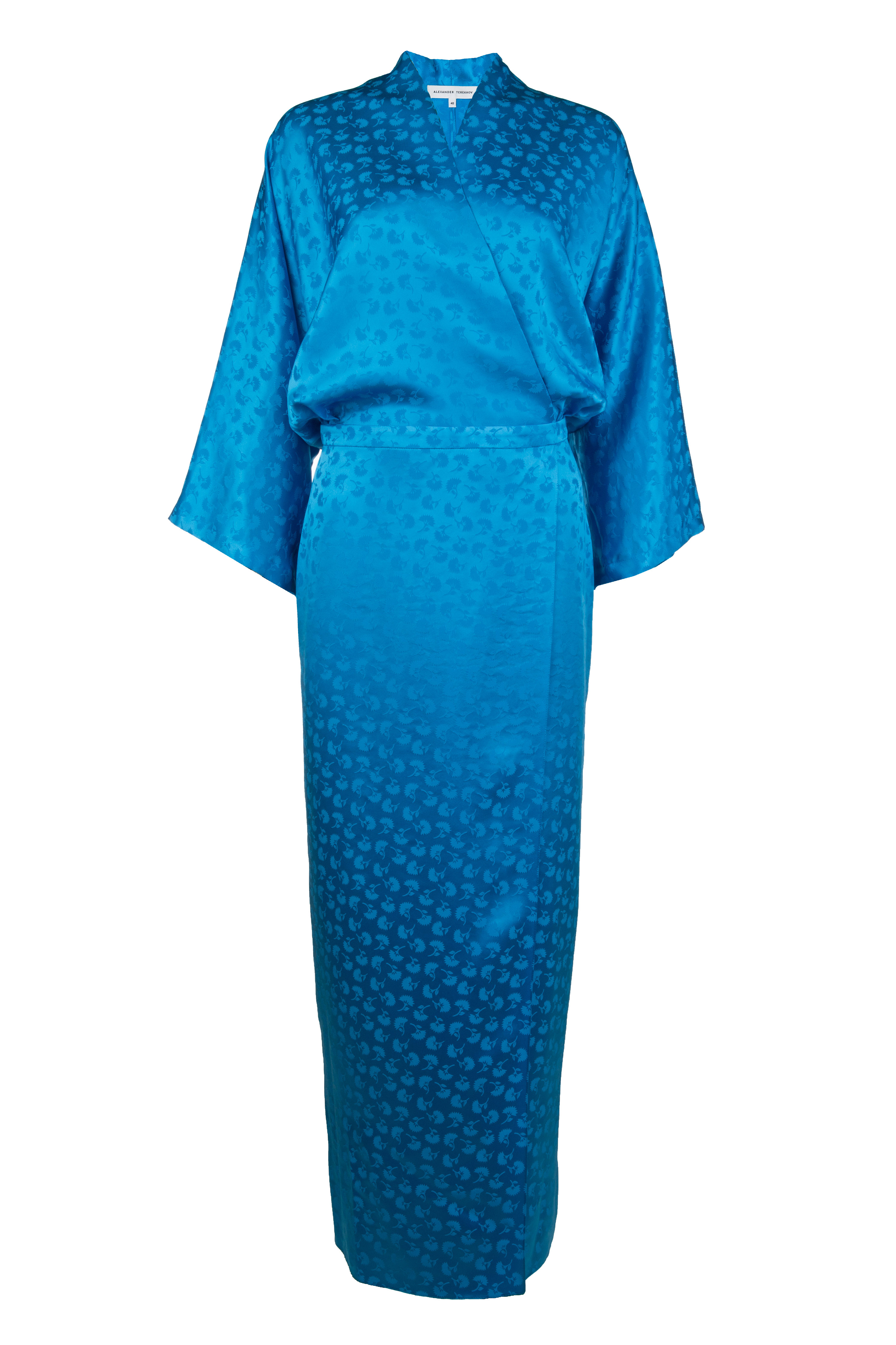 Шелковое платье с запахом и широкими рукавами,стилизованное под "кимоно"