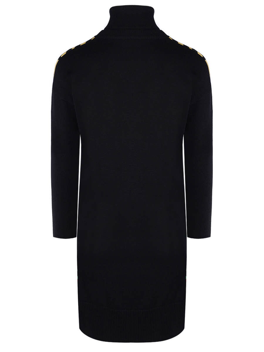 Платьё-водолазка идеально садится по фигуре и имеет высокое горлышко.