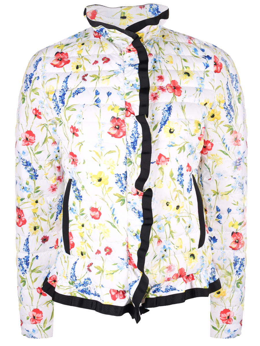Куртка с цветочным принтом и оборками. Наполнитель: 90% гусиный пух 10% гусиное перо.