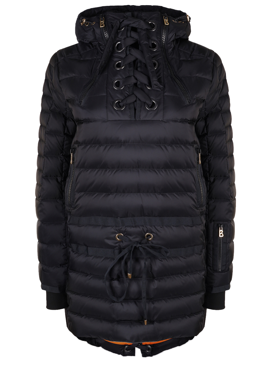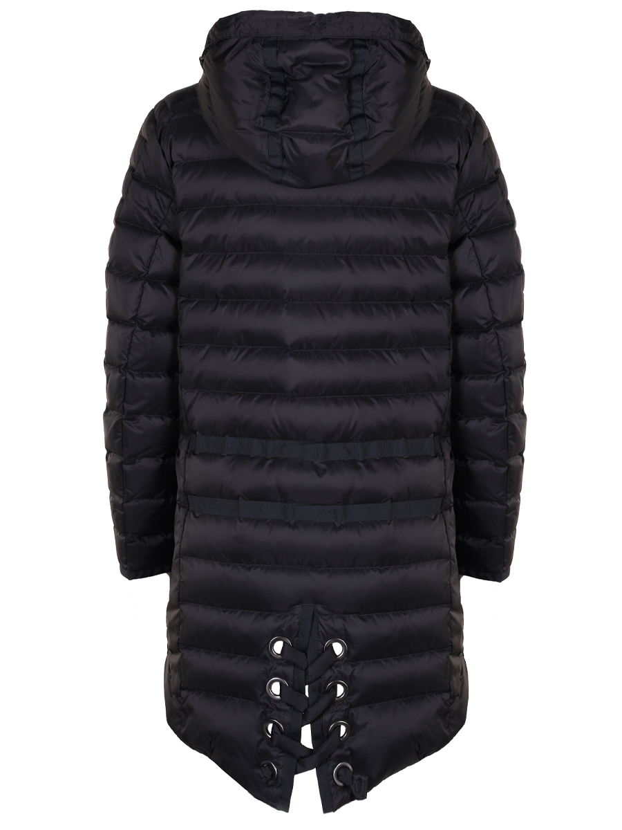 Удлинённая стёганая парка без молнии, что обеспечивает ещё большую теплоустойчивость. С помощью завязок на вороте можно регулировать размер самого воротника, так же можно регулировать размер приталенности.