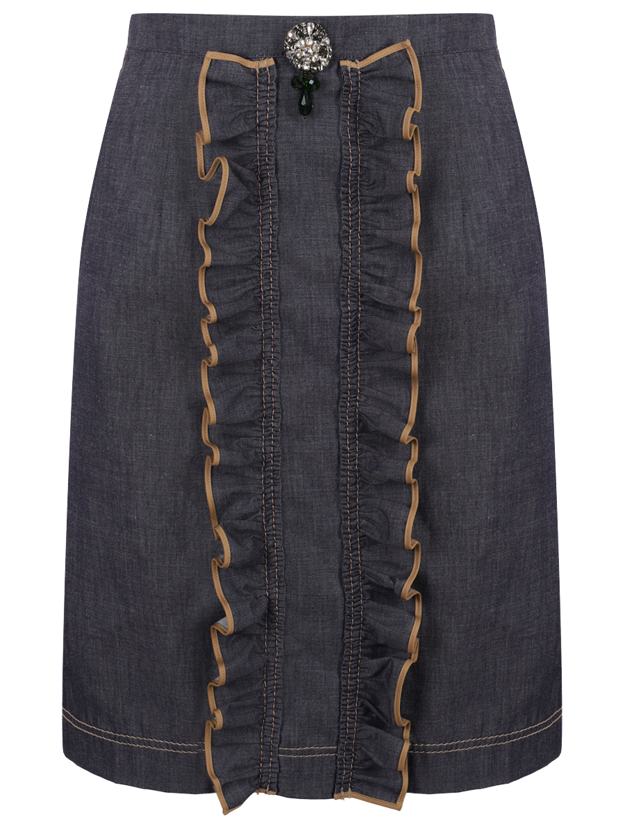 Джинсовая юбка с оборками и отделкой из страз.